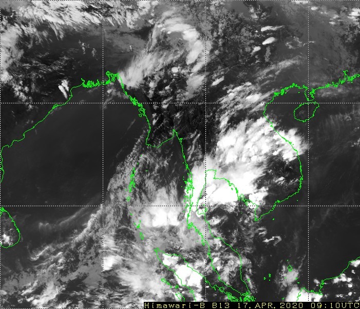 မိုးလေဝသနှင့်ဇလဗေဒညွှန်ကြားမှုဦးစီးဌာနမှ ဧပြီ ၁၇ ရက် ညနေ ၄ နာရီအချိန် နေ့စဉ်မိုးလေဝသသတင်း ထုတ်ပြန်ရာ ဘင်္ဂလားပင်လယ်အော်အခြေအနေမှာ ကပ္ပလီပင်လယ်ပြင်နှင့် ဘင်္ဂလားပင်လယ်အော်တောင်ပိုင်းတို့တွင် တိမ်အသင့်အတင့် ဖြစ်ထွန်းနေပြီး၊ ကျန်ဘင်္ဂလားပင်လယ်အော်တွင် တိမ်အနည်းငယ် ဖြစ်ထွန်းနေပါသည်။