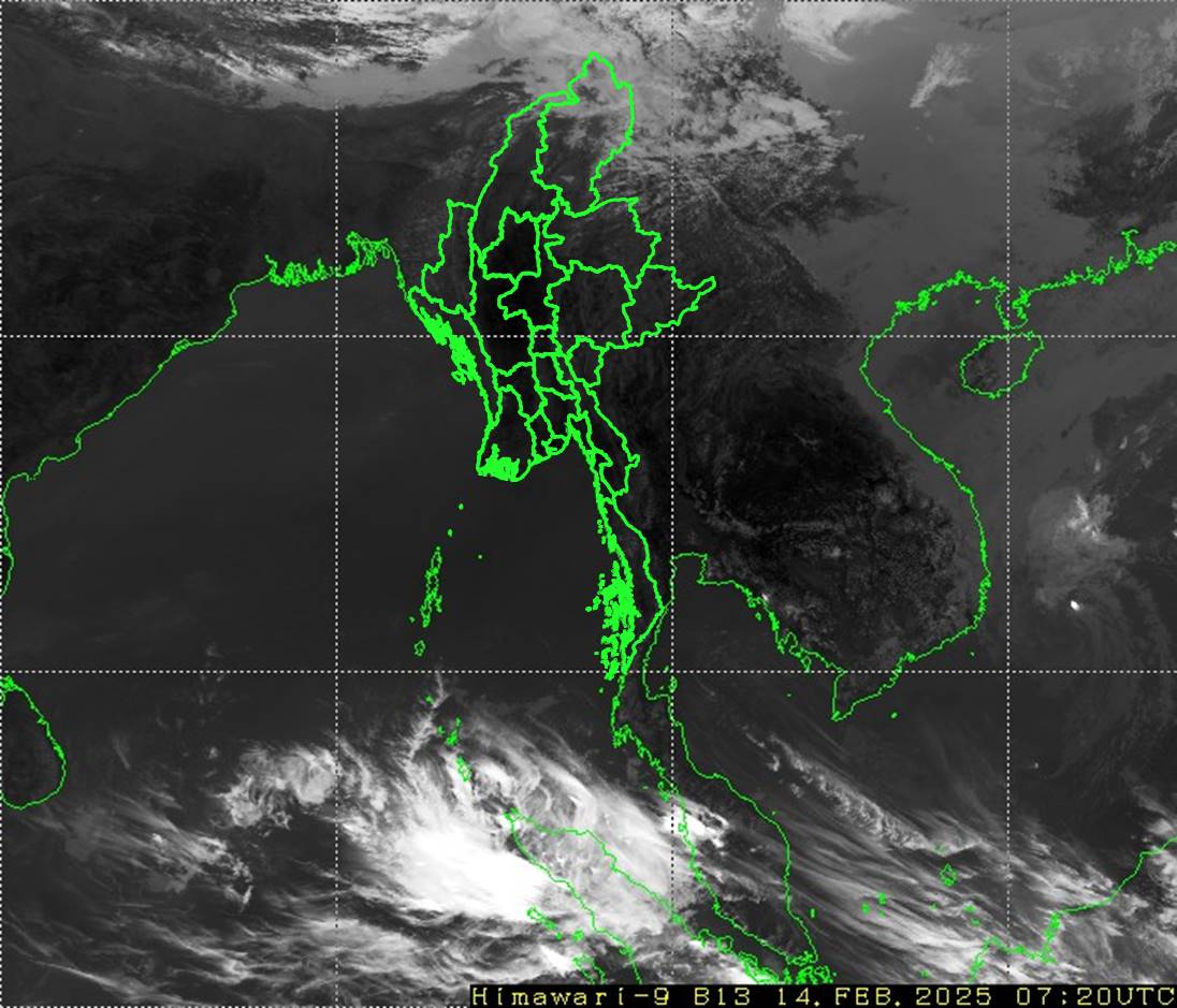ယမန်နေ့နံနက်(၀၉:၃၀)နာရီအချိန်မှ ယနေ့နံနက်(၀၉:၃၀)နာရီအချိန်အထိ မိုးလေဝသ တိုင်းထွာချက်အကျဉ်းချုပ်။ လွန်ခဲ့သော(၂၄)နာရီအတွင်းက ကချင်ပြည်နယ်တွင် နေရာကျဲကျဲနှင့် ချင်းပြည်နယ်တွင် နေရာကွက်ကျား မိုးရွာခဲ့ပါသည်။ စစ်ကိုင်းတိုင်းဒေသကြီးအထက်ပိုင်း၊ တနင်္သာရီတိုင်းဒေသကြီး၊ ကရင်ပြည်နယ်၊ ရခိုင်ပြည်နယ်နှင့် ရှမ်းပြည်နယ်(အရှေ့ပိုင်း)တို့တွင် တိမ်အသင့်အတင့် ဖြစ်ထွန်းခဲ့ပြီး၊ ကျန်တိုင်းဒေသကြီးနှင့် ပြည်နယ်တို့တွင် အများအားဖြင့် သာယာခဲ့ပါသည်။ ညအပူချိန်များမှာ တနင်္သာရီတိုင်းဒေသကြီးတွင် ဖေဖော်ဝါရီလ၏ ပျမ်းမျှအပူချိန်အောက် ၂ ဒီဂရီဆဲလ်စီးယပ် လျော့နည်းခဲ့ပြီး၊ ရှမ်းပြည်နယ်(အရှေ့ပိုင်း)တွင် ဖေဖော်ဝါရီလ၏ ပျမ်းမျှအပူချိန်ထက်၂ ဒီဂရီဆဲလ်စီးယပ်နှင့် မန္တလေးတိုင်းဒေသကြီးနှင့် ရှမ်းပြည်နယ်(မြောက်ပိုင်းနှင့် တောင်ပိုင်း) တို့တွင် ဖေဖော်ဝါရီလ၏ ပျမ်းမျှအပူချိန်တို့ထက် ၃ ဒီဂရီဆဲလ်စီးယပ် ပိုခဲ့ကာ၊ ကျန်တိုင်းဒေသကြီးနှင့် ပြည်နယ်တို့တွင် ဖေဖော်ဝါရီလ၏ ပျမ်းမျှအပူချိန် ခန့်သာ ရှိခဲ့ပါသည်။ ထူးခြားသည့် ညအပူချိန်များမှာ နမ့်စန်မြို့(ရှမ်းပြည်နယ်တောင်ပိုင်း)တွင် ၄.၀ ဒီဂရီဆဲလ်စီးယပ်၊ မိုင်းယန်းမြို့တွင် ၄.၄ ဒီဂရီ ဆဲလ်စီးယပ်၊ ဟားခါးမြို့တွင် ၅.၃ ဒီဂရီဆဲလ်စီးယပ်၊ ဟဲဟိုးမြို့တွင် ၅.၄ ဒီဂရီဆဲလ်စီးယပ်၊ တီးတိန်မြို့တွင် ၆.၂ ဒီဂရီဆဲလ်စီးယပ်၊ လွိုင်လင်မြို့တွင် ၈.၈ ဒီဂရီဆဲလ်စီးယပ်၊ ပြင်ဦးလွင်မြို့၊ ဂန့်ဂေါမြို့နှင့် ပူတာအိုမြို့တို့တွင် ၁၀.၀ ဒီဂရီဆဲလ်စီးယပ်စီ၊ မင်းကင်းမြို့နှင့် မြစ်ကြီးနားမြို့တို့တွင် ၁၀.၁ ဒီဂရီဆဲလ်စီးယပ်စီ၊ ပင်လောင်းမြို့တွင် ၁၀.၇ ဒီဂရီဆဲလ်စီးယပ်နှင့် ကျိုင်းတုံမြို့တွင် ၁၁.၆ ဒီဂရီဆဲလ်စီးယပ်တို့ ဖြစ်ကြပါသည်။ မှတ်သားဖွယ်ရာ မိုးရေချိန်များမှာ ပူတာအိုမြို့တွင် ၀.၃၂ လက်မနှင့် မချမ်းဘောမြို့တွင် ၀.၁၆ လက်မတို့ ဖြစ်ကြပါသည်။