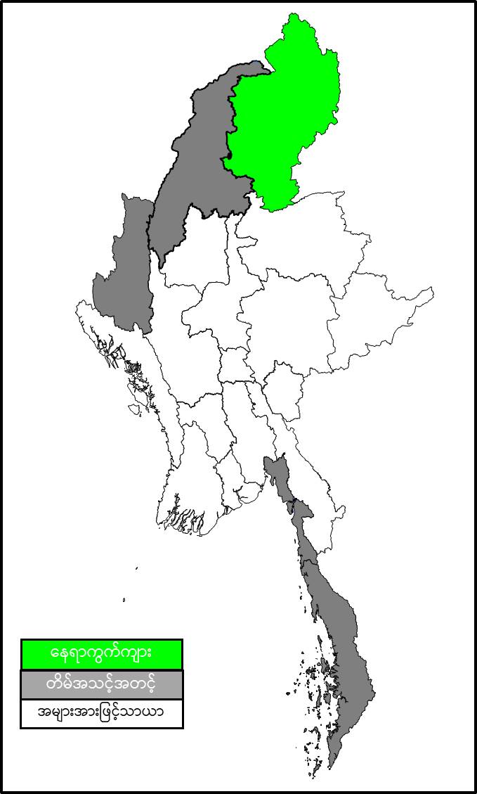 မနက်ဖြန်နံနက်အထိခန့်မှန်းချက်။ ကချင်ပြည်နယ်တွင် နေရာကွက်ကျား မိုးအနည်းငယ် ထစ်ချုန်းရွာနိုင်ပါသည်။ ရွာရန်ရာနှုန်း(၆၀) ဖြစ်ပါသည်။ စစ်ကိုင်းတိုင်းဒေသကြီးအထက်ပိုင်း၊ တနင်္သာရီတိုင်းဒေသကြီး၊ ချင်းပြည်နယ်နှင့် မွန်ပြည်နယ်တို့တွင် တိမ်အသင့်အတင့် ဖြစ်ထွန်းပြီး၊ ကျန်တိုင်းဒေသကြီးနှင့် ပြည်နယ်တို့တွင် အများအားဖြင့် သာယာမည်။