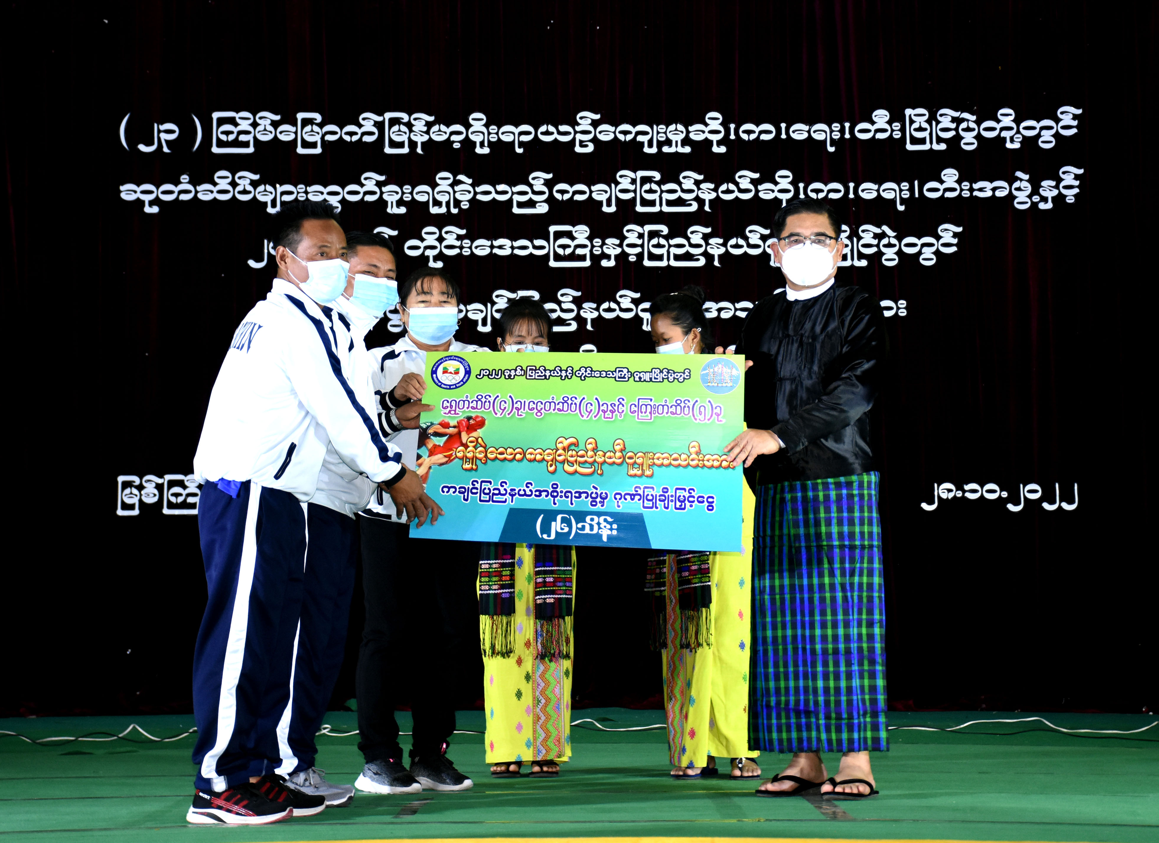ဆက်လက်၍ ပြည်နယ်အမျိုးသမီး အားကစားအဖွဲ့ဆပ်ကော်မတီ နာယက ပြည်နယ်ဝန်ကြီးချုပ်၏ ဇနီးက ၂၀၂၂ ခုနှစ်၊ တိုင်းဒေသကြီးနှင့် ပြည်နယ် ကိုယ်ကာယကြံ့ခိုင်မှုလေ့ကျင့်ခန်း(အေရိုးဗစ်) နည်းပြနှင့် ဒိုင်သင်တန်းတွင် မြန်မာနိုင်ငံ အမျိုးသမီးအားကစားအဖွဲ့ချုပ် နည်းပြအဖြစ် ရွေးချယ်ခြင်း ခံခဲ့ရသော လက်ထောက်ညွှန်ကြားရေးမှူး ဒေါ်ဘက်တီဆိုင်းဆန့်နှင့် ဒိုင်အသိအမှတ်ပြု လက်မှတ်နှင့် ထူးချွန်တတိယဆုရ ဒေါ်အောင်းဘူတို့အား ဂုဏ်ပြုချီးမြှင့်ငွေများကို ပေးအပ်ချီးမြှင့်ခဲ့သည်။