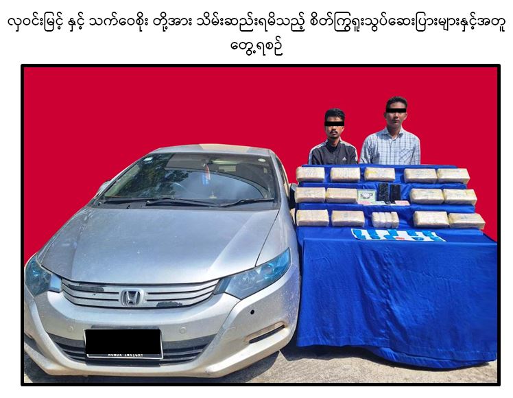 မူးယစ်ဆေးဝါးတားဆီးနှိမ်နင်းရေးရဲတပ်ဖွဲ့မှ တပ်ဖွဲ့ဝင်များ ပါဝင်သောပူးပေါင်းအဖွဲ့သည် ဇွန် ၁၇ ရက် ညနေ ၃ နာရီ ၂၀ မိနစ်တွင် ကလောမြို့နယ် တောင်ကွဲကျေးရွာအုပ်စု ပထမကျေးရွာအနီးတွင် ကျော်ဝင်းအား မသင်္ကာဖွယ်တွေ့ရှိသဖြင့် စစ်ဆေးရှာဖွေရာ စိတ်ကြွရူးသွပ် ဆေးပြား ၄,၀၀၀ ကိုလည်းကောင်း၊ ဇွန် ၁၆ ရက် ညနေ ၆နာရီတွင် နောင်ချိုမြို့နယ် တောင်ရှည်ကျေးရွာအုပ်စု မကျည်းရေကျေးရွာ ရပ်စောက်-နောင်ချိုသွားကားလမ်း၊ ဒုဌဝတီတံတားတွင် သက်ဝေစိုး မောင်းနှင်ပြီး လှဝင်းမြင့် လိုက်ပါလာသော Honda Insight အမျိုးအစားမော်တော်ယာဉ်အား ရပ်တန့်စစ်ဆေးရှာဖွေရာ ယာဉ်အတွင်းမှ စိတ်ကြွရူးသွပ်ဆေးပြား ၁၄၀,၀၀၀ ကိုလည်းကောင်း သိမ်းဆည်းရမိခဲ့သဖြင့် ၎င်းတို့အား မူးယစ်ဆေးဝါးနှင့် စိတ်ကိုပြောင်းလဲစေသောဆေးဝါးများဆိုင်ရာ ဥပဒေအရ အရေးယူထားကြောင်း သိရသည်။
