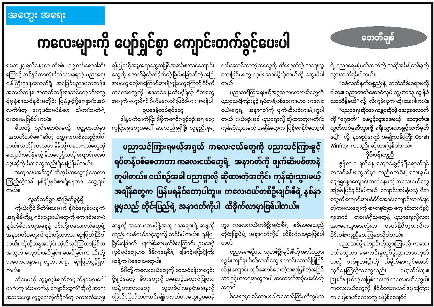 ကလေးများကို ပျော်ရွှင်စွာ ကျောင်းတက်ခွင့်ပေးပါ