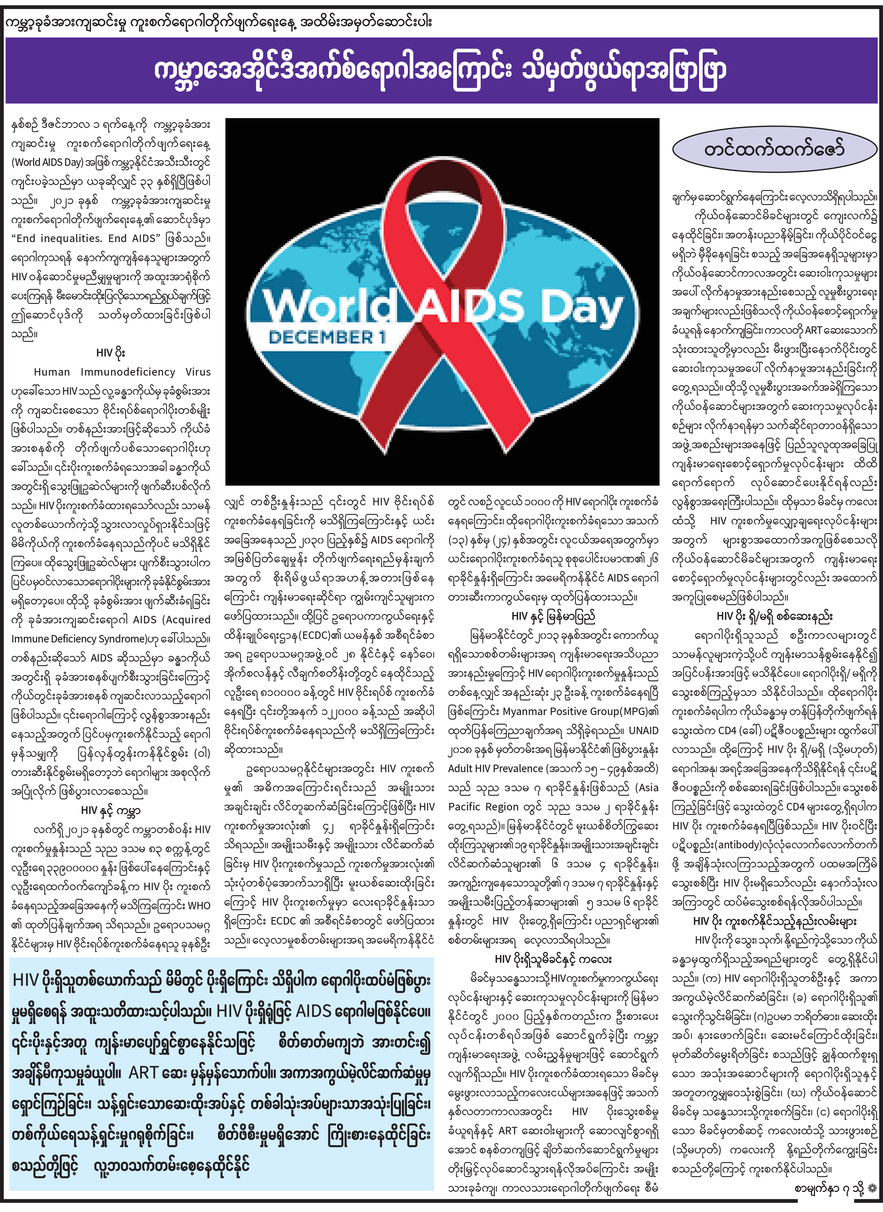 ကမ္ဘာ့အေအိုင်ဒီအက်စ်ရောဂါအကြောင်း သိမှတ်ဖွယ်ရာအဖြာဖြာ