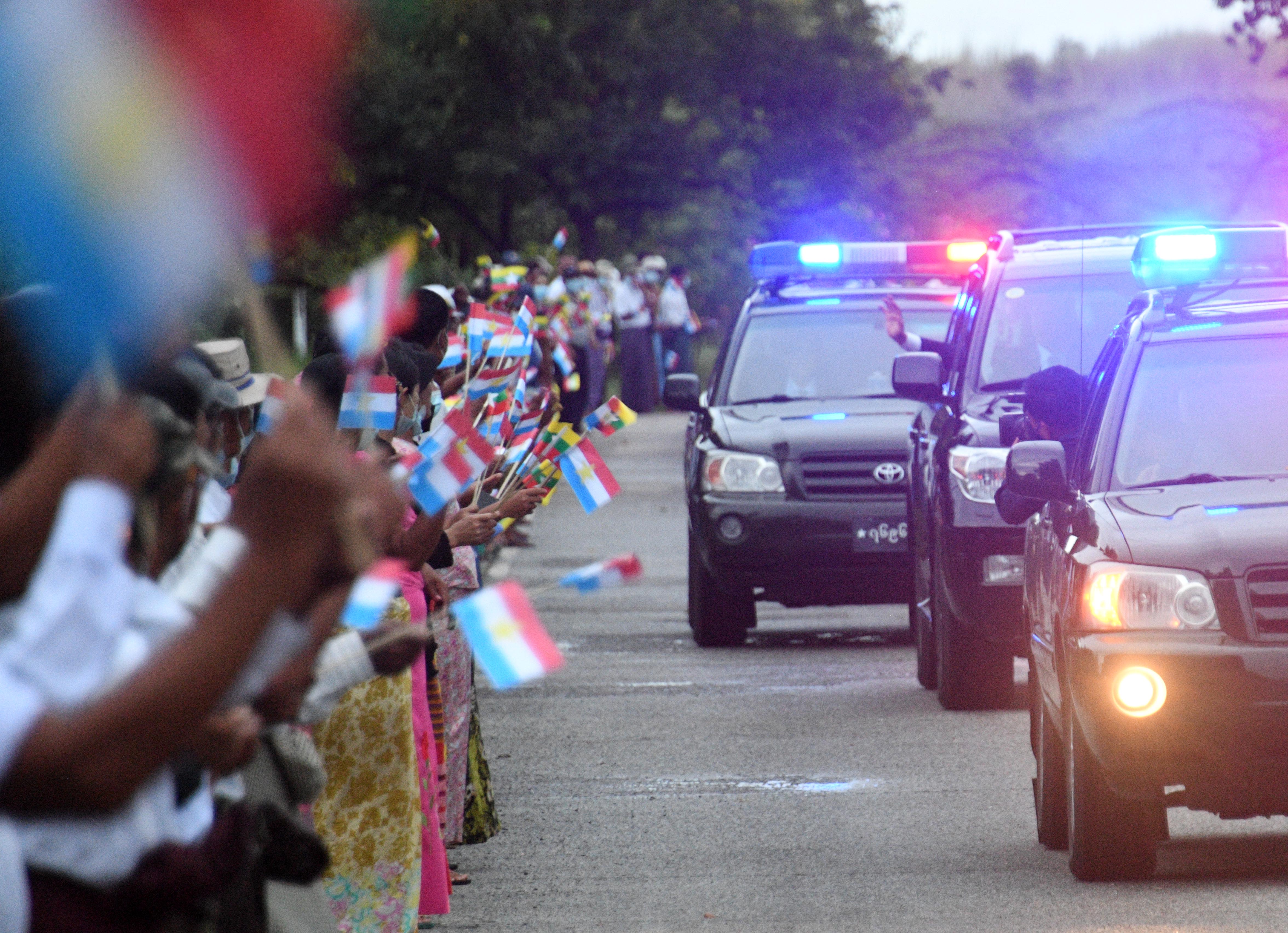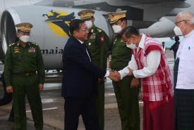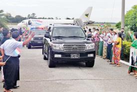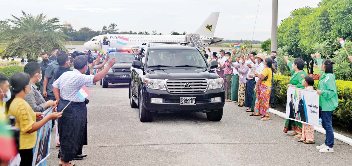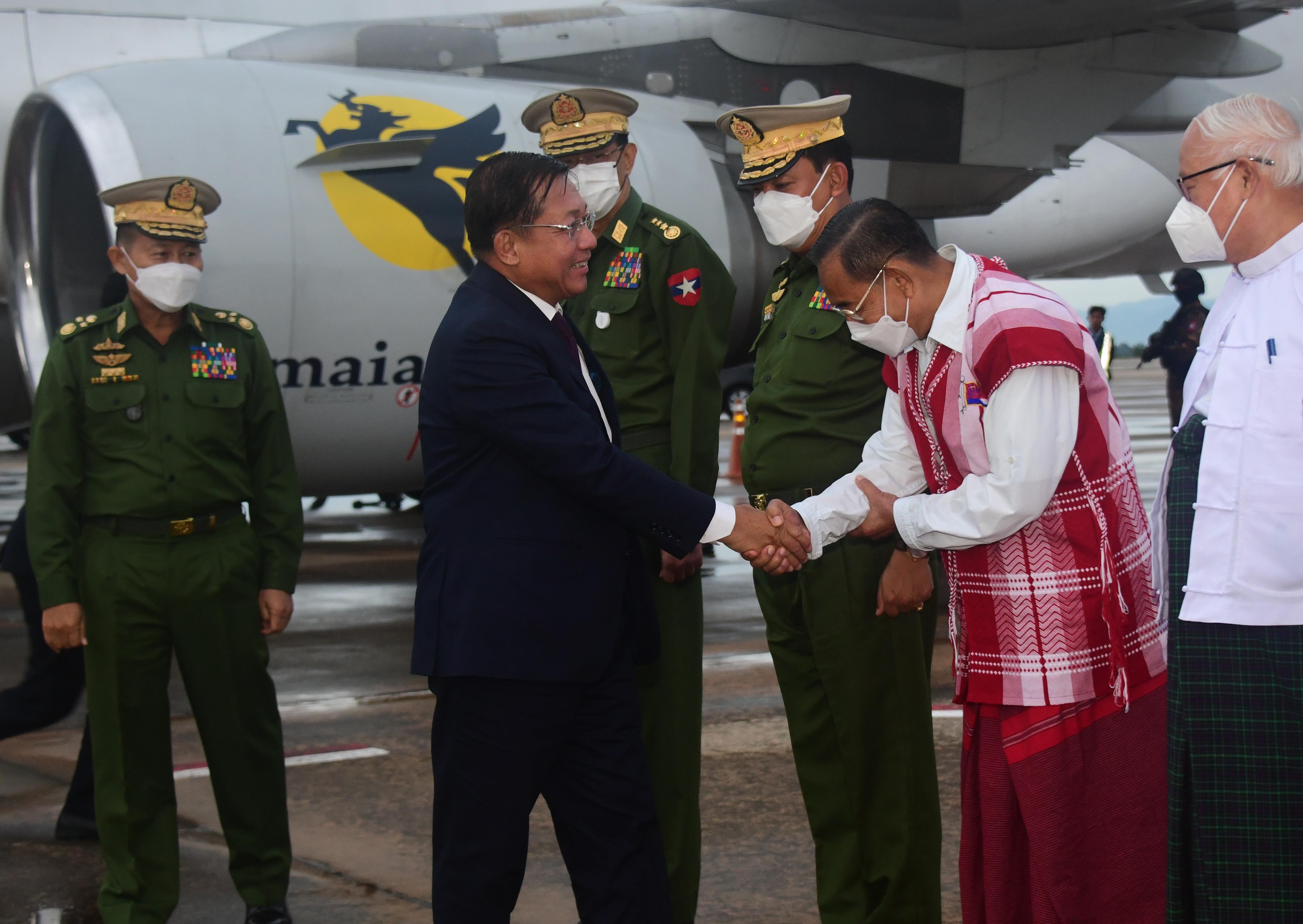 နိုင်ငံတော်စီမံအုပ်ချုပ်ရေးကောင်စီဥက္ကဋ္ဌ နိုင်ငံတော်ဝန်ကြီးချုပ် ဦးဆောင်သည့် ကိုယ်စားလှယ်အဖွဲ့သည် ညနေပိုင်းတွင် နေပြည်တော် တပ်မတော်လေဆိပ်သို့ ပြန်လည်ရောက်ရှိကြရာ ကောင်စီဒုတိယဥက္ကဋ္ဌ ဒုတိယဝန်ကြီးချုပ် ဒုတိယ ဗိုလ်ချုပ်မှူးကြီး စိုးဝင်း၊ ကောင်စီဝင်များ၊ ကောင်စီအတွင်းရေးမှူး၊ ပြည်ထောင်စုဝန်ကြီးများ၊ ကာကွယ်ရေးဦးစီးချုပ်ရုံး (ကြည်း) မှ တပ်မတော်အရာရှိကြီးများ၊ နေပြည်တော် တိုင်းစစ်ဌာနချုပ်တိုင်းမှူး၊ မြန်မာနိုင်ငံဆိုင်ရာ ရုရှားဖက်ဒရေးရှင်း နိုင်ငံသံရုံးမှ သံရုံးဒုတိယ အကြီးအကဲ Mr. Pavel A.KLABUKOV၊ ရုရှားနိုင်ငံဆိုင်ရာ မြန်မာနိုင်ငံ စစ်သံမှူး Colonel Sergei KURCHENKO နှင့် တာဝန်ရှိသူများက ကြိုဆို နှုတ်ဆက် ကြသည်။