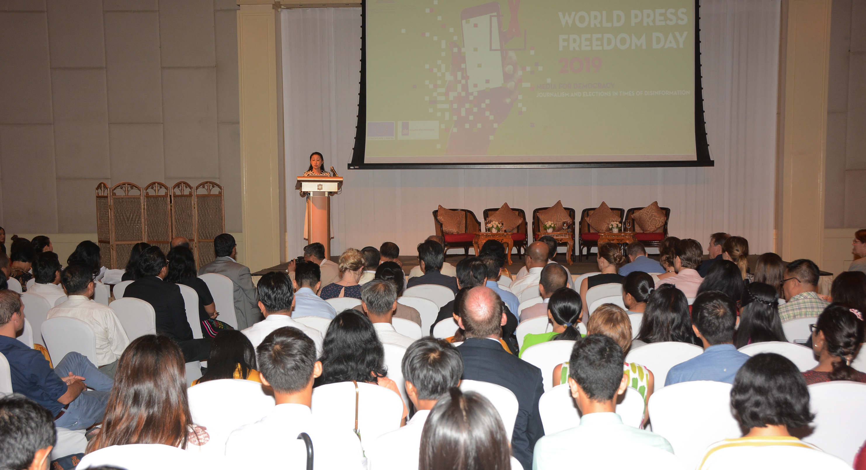 မေလ ၃ ရက်နေ့တွင် ကျရောက်မည့် ကမ္ဘာ့စာနယ်ဇင်းလွတ်လပ်ခွင့်နေ့- ၂၀၁၉ ၏ ဆောင်ပုဒ်မှာ “ဒီမိုကရေစီအတွက် မီဒီယာ- လုပ်ကြံသတင်းခေတ်အတွင်းမှ သတင်းအတတ်ပညာနှင့် ရွေးကောက်ပွဲများ” ဟူ၍ ဖြစ်သည်။