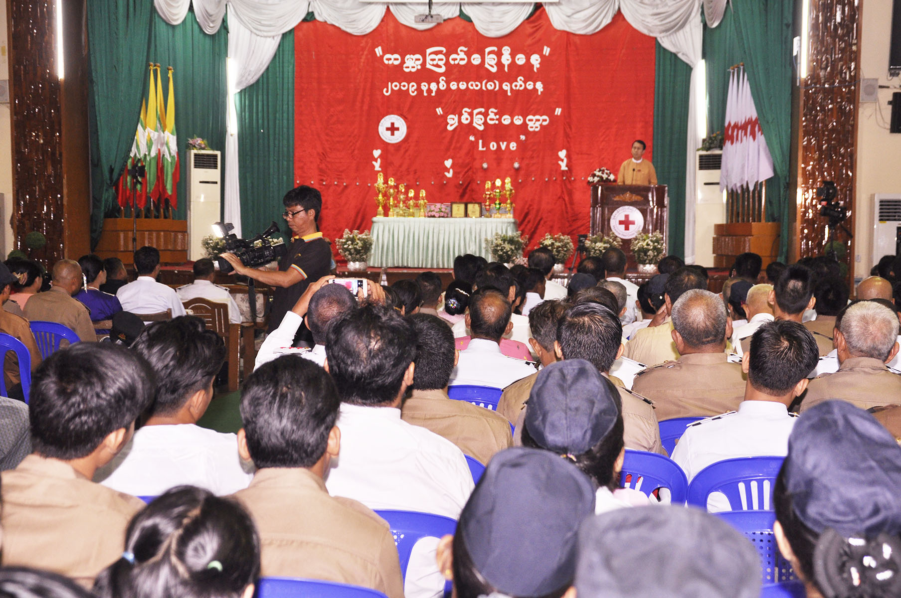 “ကြက်ခြေနီကို စတင်ဖြစ်ပေါ်အောင် မွေးဖွားပေးခဲ့တဲ့ ဟင်နရီဒူးနန့်ရဲ့ မွေးနေ့မှာ တစ်ကမ္ဘာလုံးမှာရှိတဲ့ ကြက်ခြေနီတွေကို ဂုဏ်ပြုတဲ့အနေနဲ့ ကမ္ဘာ့ကြက်ခြေနီနေ့ဆိုပြီး သတ်မှတ်ခဲ့ပြီးတော့ တပ်ဖွဲ့ဝင်တွေကို ဂုဏ်ပြုလိုတာကြောင့် ယနေ့အခမ်းအနားကို ကျင်းပရတာပါ။ သူတို့တစ်နှစ်တာ လုပ်ဆောင်ခဲ့တာတွေကို ဂုဏ်ပြုချီးမြှင့်ခြင်းနဲ့ သူတို့ပြခန်းတွေကို အကဲဖြတ်ဆု ချီးမြှင့်တာကြောင့် ကျေနပ်မှုရှိမှာပါ။ ပရဟိတလုပ်ငန်းတွေ ဆက်လက်လုပ်ဆောင်နိုင်ဖို့ အားပေးတဲ့အနေနဲ့ ကျင်းပခဲ့တာပါ။ မြန်မာနိုင်ငံ ကြက်ခြေနီဥပဒေ၊ နည်းဥပဒေတွေကို လိုက်နာပြီးတော့ ကြက်ခြေနီလုပ်ငန်းများကို ယခုထက်ပိုမို စွမ်းဆောင်နိုင်ဖို့ လုပ်ဆောင်သွားမှာပါ”ဟု ရန်ကုန်တိုင်းဒေသကြီး ကြက်ခြေနီကြီးကြပ်မှု ကော်မတီဥက္ကဋ္ဌ ဒေါက်တာဒေါ်လှကျင်က ပြောသည်။