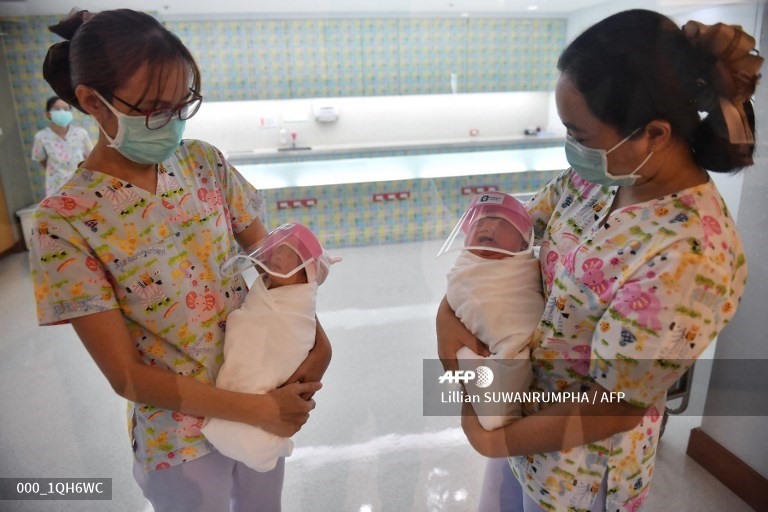 ထိုင်းနိုင်ငံက ဆေးရုံတွေက ကမ္ဘာ့ကပ်ရောဂါဖြစ်ပွားချိန် မွေးဖွားလာတဲ့ မွေးကင်းစ ကလေးငယ်များကို မျက်နှာမှာ အကာအကွယ်လေးတွေ ဝတ်ဆင်ပေးပြီး ကပ်ရောဂါကနေ ကာကွယ်ပေးနေပါတယ်။