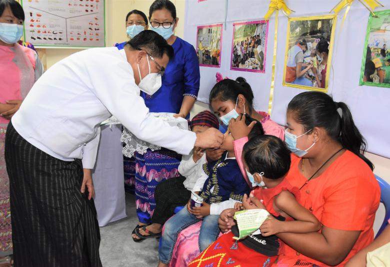 ယင်းနောက် ပြည်နယ်ဝန်ကြီးချုပ်နှင့် ဇနီးဒေါ်နန်ဆိုင်း၊ ပြည်နယ်တရားလွှတ်တော် တရားသူကြီးချုပ်နှင့် ဇနီး၊ ပြည်နယ်ဝန်ကြီးများနှင့် ၎င်းတို့၏ဇနီးများ၊ ပြည်နယ်ဥပဒေချုပ် တို့က ရက်သတ္တပတ် လှုပ်ရှားမှု အထိမ်းအမှတ် ပြသထားသည့် ပြခန်းငယ်အား လှည့်လည်ကြည့်ရှုကာ အသက် ၅ နှစ်အောက် ကလေးငယ်များကို ဗီတာမင် A နှစ်သိန်းအားနှင့် ကိုယ်ဝန်ဆောင် မိခင်များအား အာဟာရကြွယ်ဝသည့် စားသောက်ဖွယ်ရာများ လိုက်လံတိုက်ကျွေးပေးခဲ့ကြောင်း သိရှိရသည်။