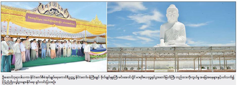ဆင်းတုတော်ကြီး တည်ထားကိုးကွယ်ရန် ဆောင်ရွက်ရာ၌ ခေတ်အလိုက်တည်ထားဆောင်ရွက်ခဲ့သည့် ရုပ်ပွားတော်များထဲမှ အကောင်းဆုံးဖြစ်သည့် ရတနာပုံခေတ်ဟန် ဘူမိဖဿပုံစံဖြင့် တည်ထားကိုးကွယ်နိုင်ရေး ဆောင်ရွက်ခဲ့ကြောင်း၊ မိမိတို့နိုင်ငံအနေဖြင့် ၁၈၈၅ ခုနှစ်တွင် မြန်မာပြည်လွတ်လပ်ရေးဆုံးရှုံးခဲ့ပြီး ၁၈၈၆ ခုနှစ် ဇန်နဝါရီလ ၁ ရက်နေ့ မှစတင်၍ မိမိတို့နိုင်ငံ၏ သမိုင်းမှာ အဆက်ပြတ်သွားခဲ့ကြောင်း၊ ၁၉၄၈ ခုနှစ် မှသာ လွတ်လပ်ရေး ပြန်လည်ရရှိခဲ့ကြောင်း၊ ကိုလိုနီဖြစ်ခဲ့သည့် ကာလအတွင်း မိမိတို့နိုင်ငံ၏ ယဉ်ကျေးမှုများ အဆက် ပြတ်သွားခဲ့ခြင်းကြောင့် နောက်ဆုံးကျန်ရှိခဲ့သည့် ယဉ်ကျေးမှုကိုယူရန်အတွက် ရတနာပုံခေတ်ဟန်ဖြင့် ဆောင်ရွက်ခဲ့ခြင်းဖြစ်ကြောင်း၊ ဘုရားကြီး ထုဆစ်ပူဇော်ရန် စဉ်းစားရာတွင် ဉာဏ်တော်ကို အဓိကထားပြီး သတ်မှတ်ထားသည့် ထုံးတမ်း အစဉ်အလာများပေါ်မူတည်၍ လိုအပ်သည့် ပလ္လင်တော်နှင့် ဒူးတော်နေရာများအတွက် စကျင်ကျောက်များထပ်မံရရှိရေး ဆောင်ရွက်ခဲ့ကြောင်း၊ ဆင်းတုတော်ကြီးထုဆစ်ရန်အတွက် ကျောက်တုံးတော်ကြီးများကို သယ်ယူရေး စီစဉ်ဆောင်ရွက်ခဲ့ရာတွင် ကုန်းလမ်းမှသယ်ယူရန် အခက်အခဲများရှိခြင်းကြောင့် စကျင်တောင်မှ ဧရာဝတီမြစ်၊ ၎င်းမှ ဆီမီးခုံဆိပ်ကမ်း၊ ထိုမှတစ်ဆင့် ကုန်းလမ်းမှ နေပြည်တော်သို့ သယ်ဆောင်နိုင်ရေးအတွက် အသေးစိတ်လိုက်လံကြည့်ရှုခဲ့ပြီး ဩဝါဒါစရိယဆရာတော်ကြီးများထံမှ ဩဝါဒခံယူ၍ ကျောက်တုံးတော်ကြီးများကို ပိုင်းဖြတ် သယ်ယူပင့်ဆောင်ခြင်းများ ဆောင်ရွက်ခဲ့ရကြောင်း၊ ထိုသို့သယ်ယူချိန်တွင်လည်း ထုထည်ပမာဏ ကြီးမားခြင်းကြောင့် အခက်အခဲများကြားမှ ပင့်ဆောင်ခဲ့ရကြောင်း၊ စကျင်တောင်မှ သယ်ဆောင် ရန်အတွက် ဆောင်ရွက်ရာတွင်လည်း တပ်မတော်အင်ဂျင်နီယာတပ်ဖွဲ့နှင့် တပ်မတော်(ရေ) တို့ပူးပေါင်း၍ မြောင်မြစ်သို့ တူးမြောင်းဖောက်လုပ်ရာတွင် မြေကျင်း ၉၂၅၀၇ ကျင်း၊ တူးမြောင်းအရှည် ၄၅၈၃ ပေ ဖောက်လုပ်ဆောင်ရွက်ခဲ့ရကြောင်း၊ အလားတူ ဆီမီးခုံဆိပ်ကမ်းသို့လည်း ရေယာဉ်များ ဆိုက်ကပ်နိုင်ရေး ပြင်ဆင်ဆောင်ရွက်ခဲ့ရကြောင်း။