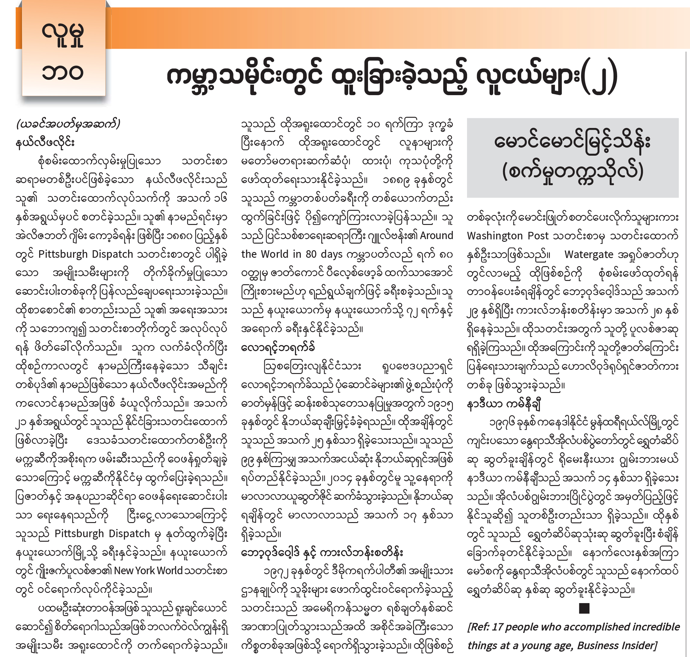 ကမ္ဘာ့သမိုင်းတွင် ထူးခြားခဲ့သည့် လူငယ်များ(၂)