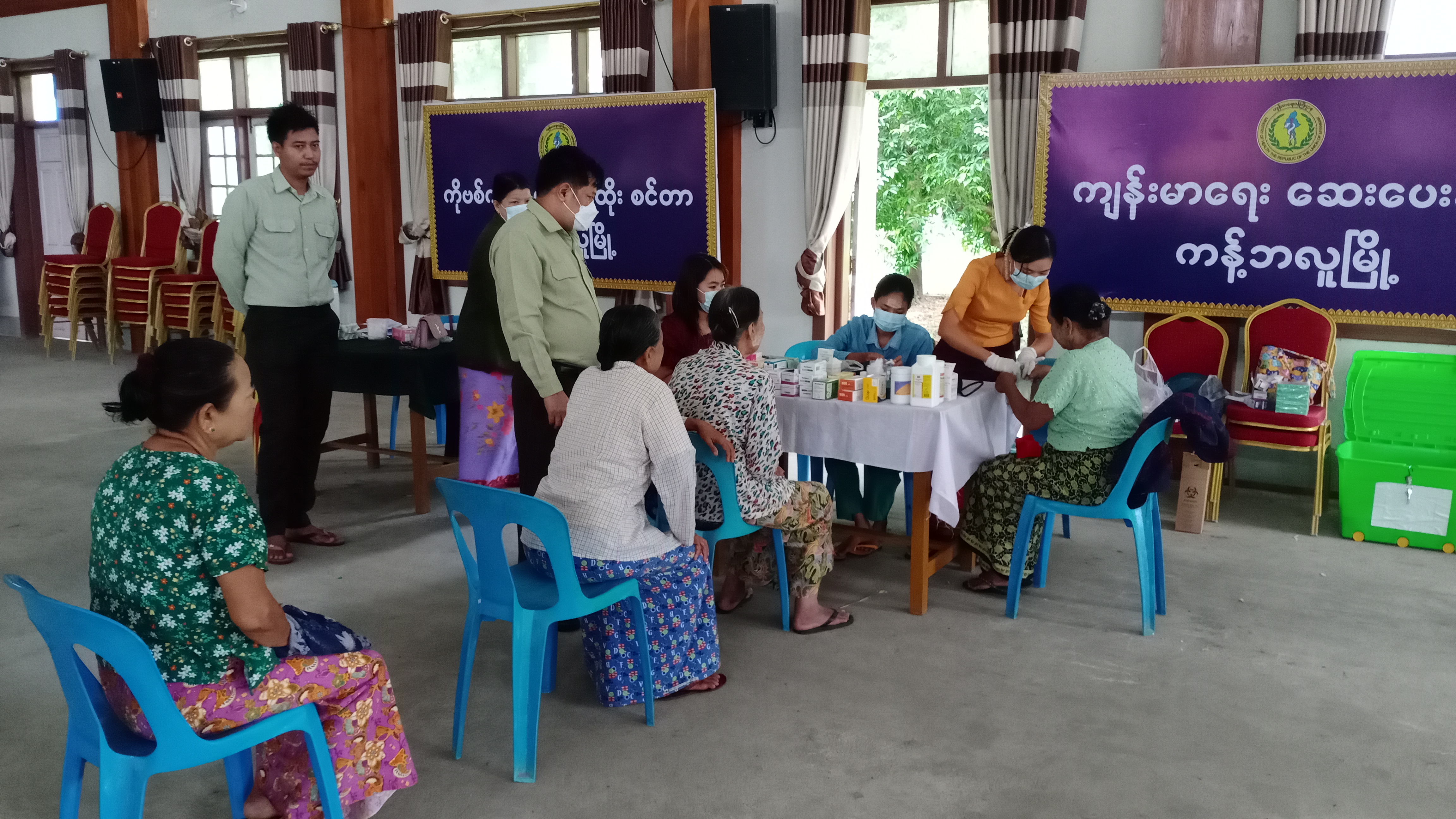 ထို့ပြင် အဆိုပါခန်းမ၌ မြို့နယ် ပြည်သူ့ကျန်းမာရေးဦးစီးဌာနမှ ကျန်းမာရေးဆေးပေးခန်းဖွင့်လှစ်၍ ကျန်းမာရေးဝန်ထမ်းများက လာရောက်ပြသသူ ပြည်သူများအား သွေးပေါင်ချိန် တိုင်းတာပေးခြင်း၊ သွေးချို ဆီးချို စစ်ဆေးပေးခြင်းနှင့် လိုအပ်သည့် ကျန်းမာရေးစစ်ဆေးကုသခြင်းများကို အခမဲ့ ဆောင်ရွက်ပေးခဲ့ရာ မြို့နယ်စီမံအုပ်ချုပ်ရေးအဖွဲ့ဥက္ကဋ္ဌ ဦးဘုန်းထက်နိုင်မြင့်က ကြည့်ရှုအားပေးပြီး လိုအပ်သည်များ ပေါင်းစပ်ဆောင်ရွက်ပေးခဲ့ကြောင်း သိရသည်။