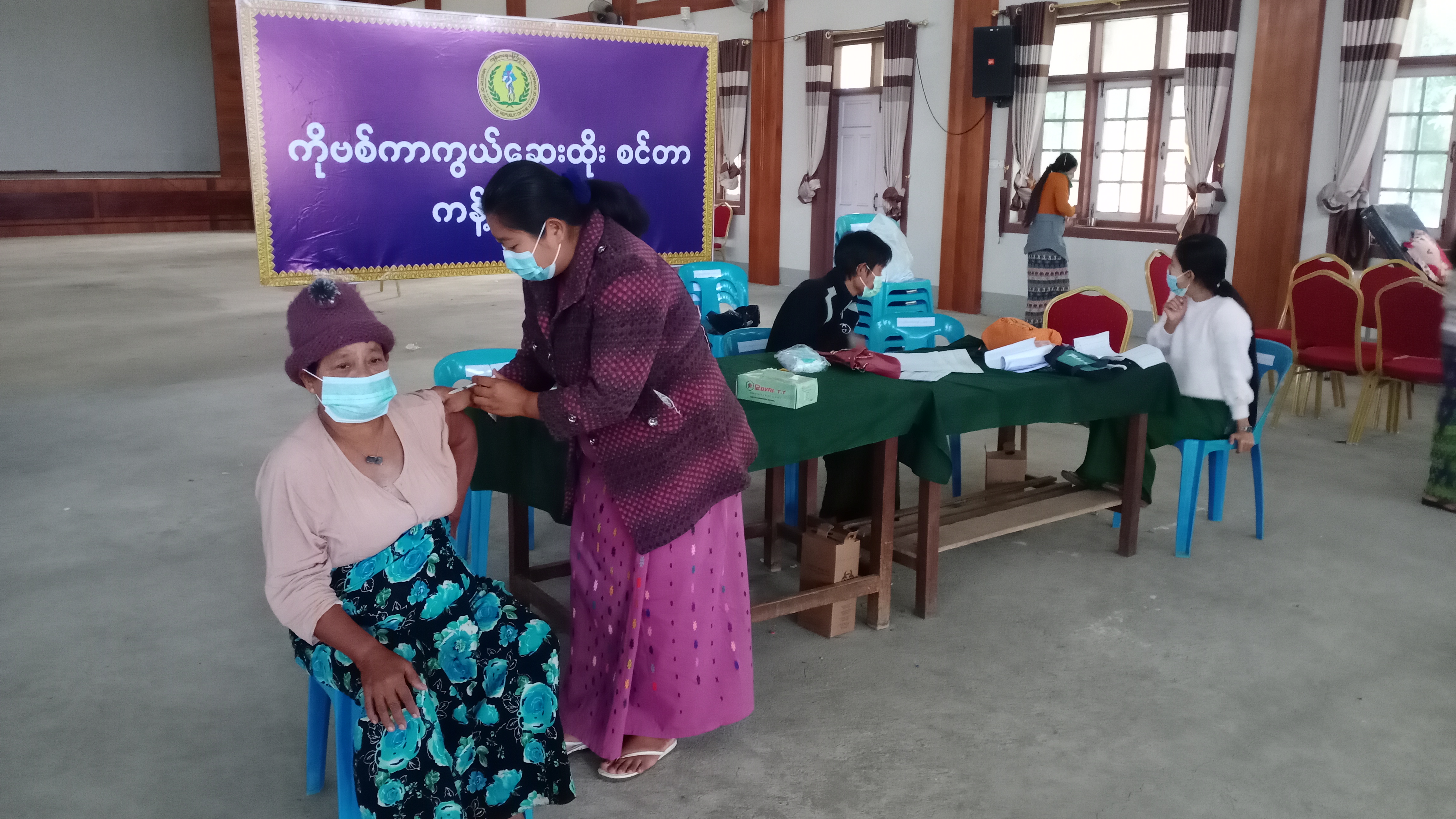 ထို့ပြင် အဆိုပါခန်းမ၌ ကိုဗစ်- ၁၉ ရောဂါ ကြိုတင်ကာကွယ်ရေးအတွက် အသက် ၁၈ နှစ်နှင့်အ ထက် ပြည်သူများအား ပထမအကြိမ်၊ ဒုတိယအကြိမ်နှင့်ထပ်ဆောင်းကာကွယ်ဆေးများကို ကျန်းမာရေးဝန်ထမ်း များက စနစ်တကျထိုးနှံပေးပြီး၊ အခမဲ့ကျန်းမာရေးစောင့်ရှောက်မှု လုပ်ငန်းများကိုလည်း ဆောင်ရွက်ပေးခဲ့ ကြောင်းသိရသည်။