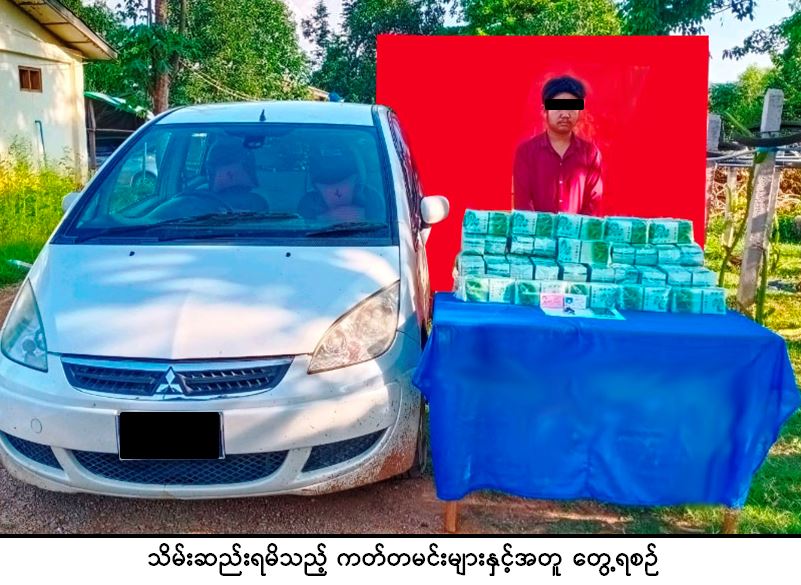 မူးယစ်ဆေးဝါး တားဆီးနှိမ်နင်းရေးရဲတပ်ဖွဲ့မှ တပ်ဖွဲ့ဝင်များပါဝင်သော ပူးပေါင်းအဖွဲ့သည် မေ ၇ ရက် ည ၉ နာရီတွင် ကွန်ဟိန်းမြို့နယ်၊ တာကော်ပူးပေါင်းစစ်ဆေးရေး စခန်းတွင် ကာလိမှ မိုင်းပျဉ်းဘက်သို့ စိုင်းနော်ရှဲန် မောင်းနှင်လာသည့် MITSUBISHI COLT မော်တော်ယာဉ်ကို သတင်းအရရှာဖွေရာ ဒေသကာလတန်ဖိုးငွေကျပ် သိန်း ၅,၀၀၀ ကျော်တန်ဖိုးရှိ ကတ်တမင်း ၆၁ ကီလို သိမ်းဆည်းရမိခဲ့ပြီး စစ်ဆေးဖော်ထုတ်ချက်အရ သိမ်းဆည်းရမိ ကတ်တမင်းများကို ကာလိမြို့မှ မိုင်းပျဉ်းမြို့သို့ သယ်ဆောင်ခြင်းဖြစ်ကြောင်း သိရှိရသဖြင့် ၎င်းအား ဥပဒေအရ အရေးယူထားရှိပြီး ကွင်းဆက်ပြစ်မှု ကျူးလွန်သူများကို ဆက်လက်စစ်ဆေး ဖော်ထုတ်လျက်ရှိကြောင်း သိရသည်။