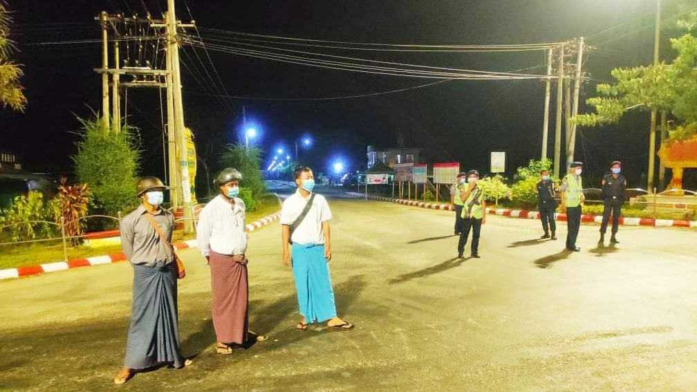 "ကိုဗစ်-၁၉ ရောဂါကူးစက်ပျံ့နှံ့မှု မရှိစေရေးနှင့် အချိန်မီထိန်းသိမ်းနိုင်ရေးအတွက် အများပြည်သူ အကျိုးငှာ ဌာနဆိုင်ရာတာဝန်ဖြင့် သွားရောက်သူများ၊ ကျန်းမာရေးကိစ္စ၊ နာရေးကိစ္စဆောင်ရွက်သူများမှအပ အခြားမည်သူမဆို ည ၁၀ နာရီမှ နောက်တစ်နေ့ နံနက် ၄ နာရီအတွင်း အပြင်မထွက်ရန် ဒေသရအမိန့် အမှတ် (၁/၂၀၂၀)ကို ဧပြီ ၁၈ ရက်နေ့က ထုတ်ပြန်ကြေငြာခဲ့ပါတယ်။ ပြည်သူတွေ ဒေသန္တရအမိန့်ကို စည်းကမ်းတကျလိုက်နာမှုရှိစေရေး၊ မြို့နယ်အတွင်းလုံခြုံရေးနှင့် မူခင်းများမဖြစ်ပွားစေရေးတို့အတွက် မြန်မာနိုင်ငံရဲတပ်ဖွဲ့နှင့် မီးသတ်တပ်ဖွဲ့ဝင်များ၊ကိုဗစ်-၁၉ ကာကွယ်ထိန်းချုပ်ကုသရေး ကော်မတီဝင်များ၊ ရပ်မိရပ်ဖများ၊ လူမှုရေးအသင်းအဖွဲ့များပါဝင်တဲ့ ပူးပေါင်းစစ်ဆေးရေးအဖွဲ့များဖြင့် မြို့ပေါ်ရပ်ကွက်များနဲ့ကျေးရွာများမှာ ညစဉ်တိုင်း လုံခြုံရေးလှည့်ကင်းများကို ဆောင်ရွက်လျက်ရှိကြောင်း" မြို့နယ်အုပ်ချုပ်ရေးမှူး ဦးဝင်းမြင့်ထံမှ သိရသည်။