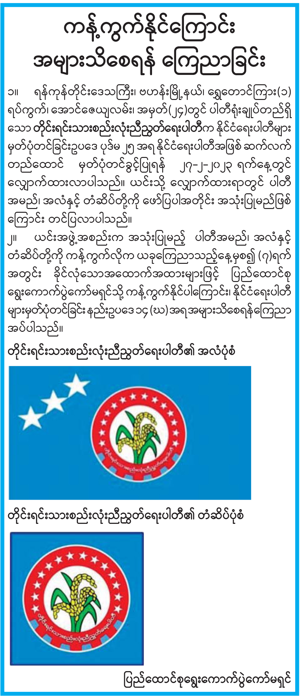 ကန့်ကွက်နိုင်ကြောင်း အများသိစေရန် ကြေညာခြင်း