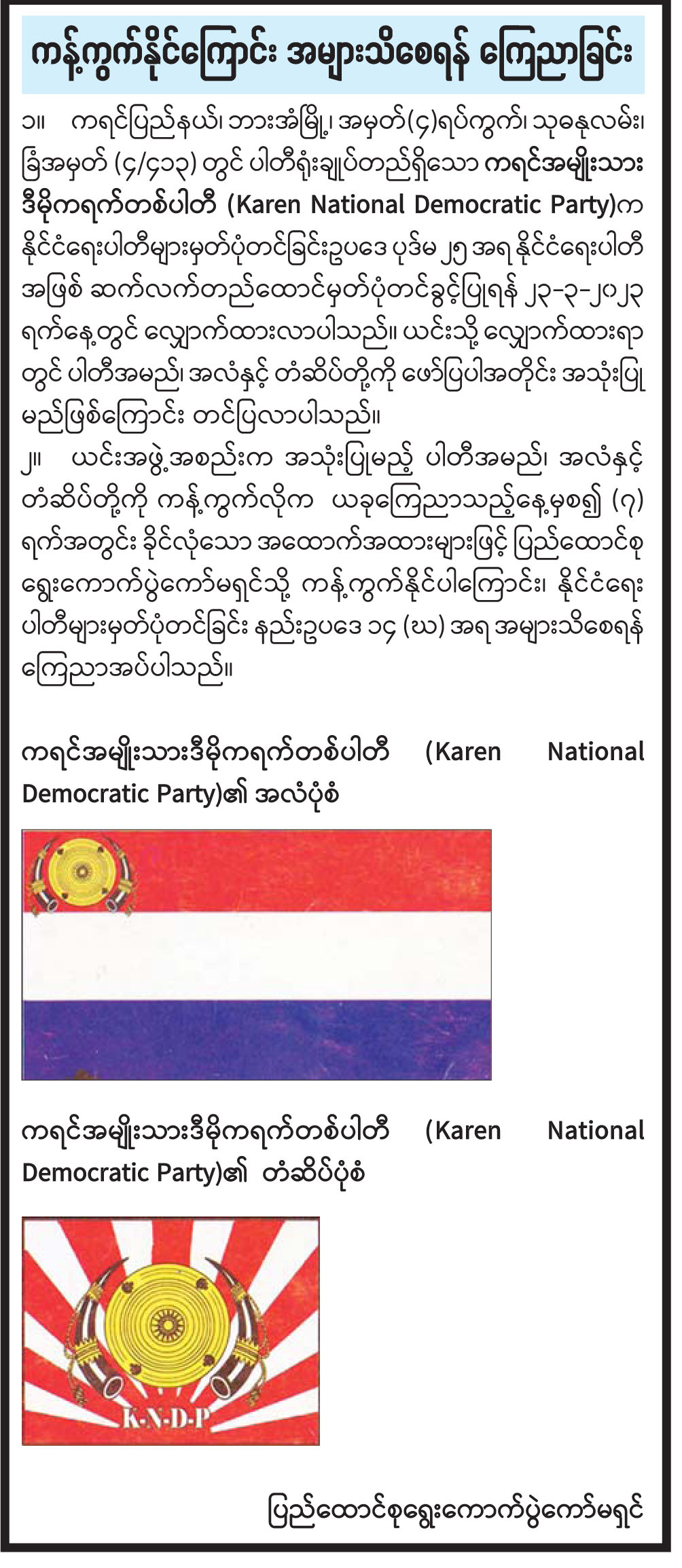 ကန့်ကွက်နိုင်ကြောင်း အများသိစေရန် ကြေညာခြင်း