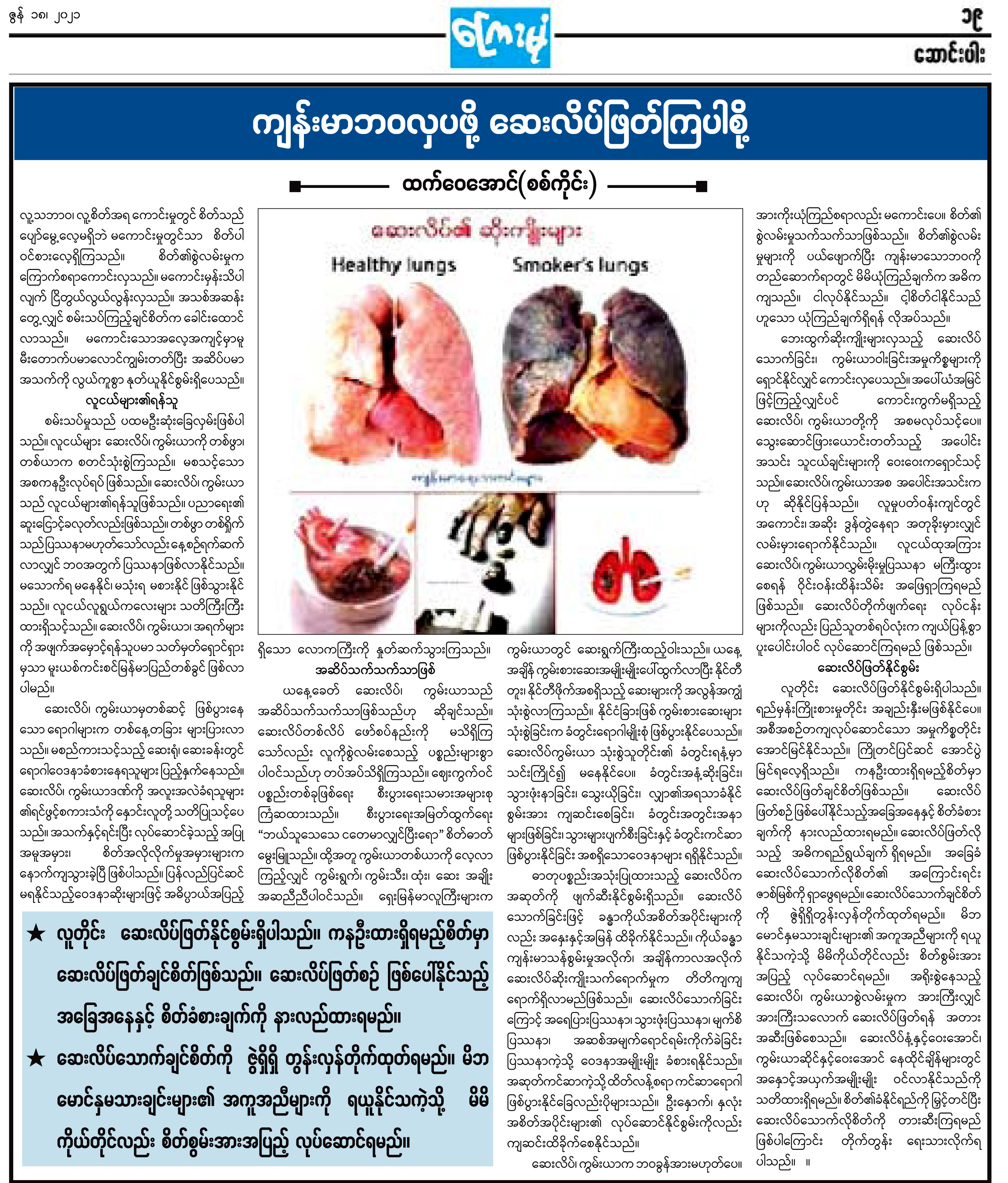 ကျန်းမာဘဝလှပဖို့ ဆေးလိပ်ဖြတ်ကြပါစို့