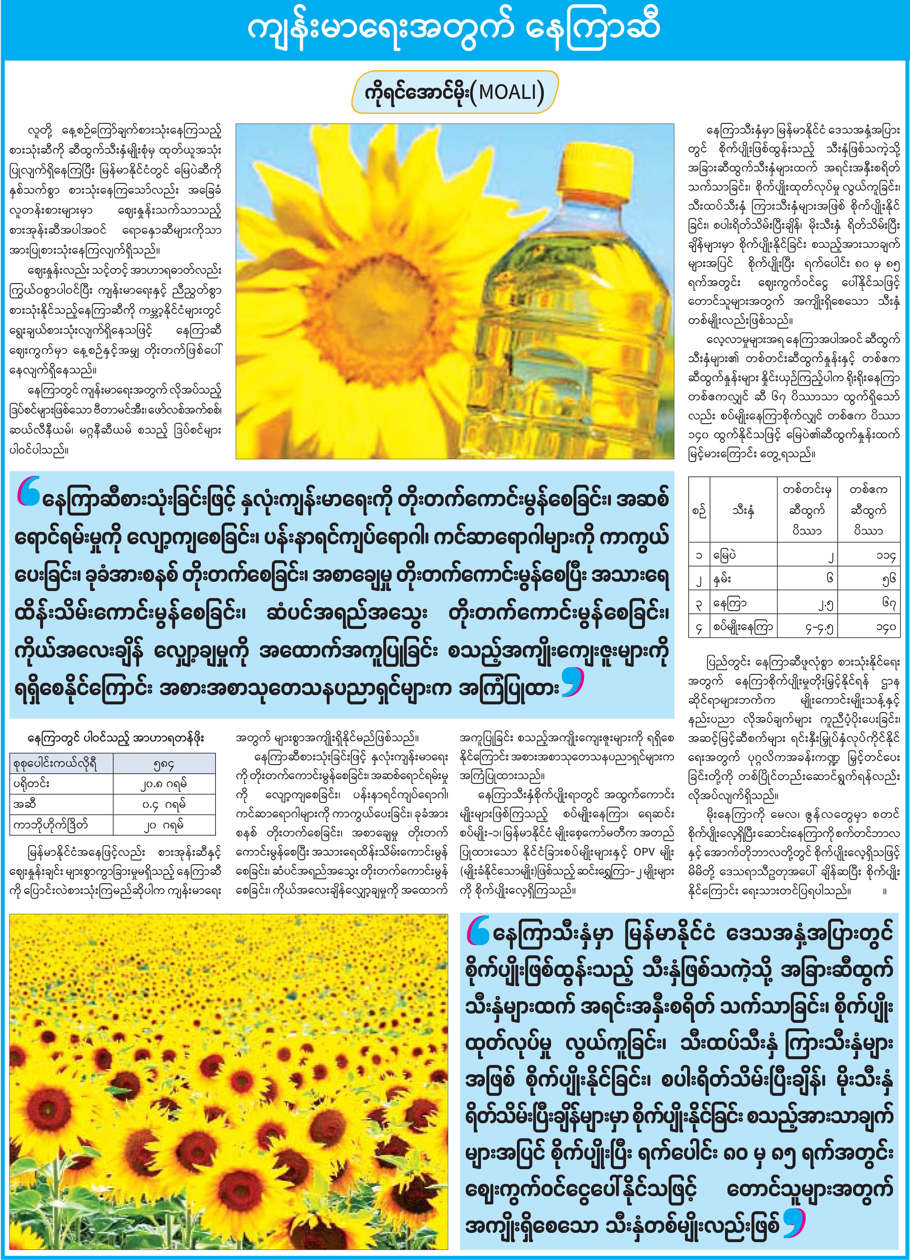 ကျန်းမာရေးအတွက် နေကြာဆီ