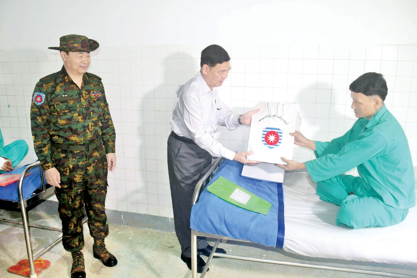 ဦးစွာ ရခိုင်ပြည်နယ်ဝန်ကြီးချုပ်၊ တိုင်းမှူးနှင့် တာဝန်ရှိသူများသည် ခုတင်(၁၀၀)မှ အထူးကုဆရာဝန်ကြီးများနှင့် ဆရာဝန်၊ သူနာပြုများအား ရင်းရင်းနှီးနှီး တွေ့ဆုံနှုတ်ဆက်ပြီး ဆေးရုံတက်ရောက် ကျန်းမာရေးစောင့်ရှောက်မှုခံယူနေကြသော တပ်မတော်သားများနှင့် မိသားစုဝင်များ၊ ပြည်သူများကို ကြည့်ရှု၍ တစ်ဦးချင်းစီ၏ ရောဂါဖြစ်ပွားမှု၊ ဆေးဝါးကုသပေးထားမှုနှင့် ကျန်းမာရေး တိုးတက်ကောင်းမွန်မှု အခြေအနေများကို မေးမြန်းအားပေးစကား ပြောကြားကာ ရခိုင်ပြည်နယ် အစိုးရအဖွဲ့နှင့် တပ်မတော်က ပေးအပ်ချီးမြှင့်သည့် စားသောက်ဖွယ်ရာများကို ပေးအပ်ကာ လှည့်လည်နှုတ်ဆက် အားပေးစကားပြောကြားသည်။