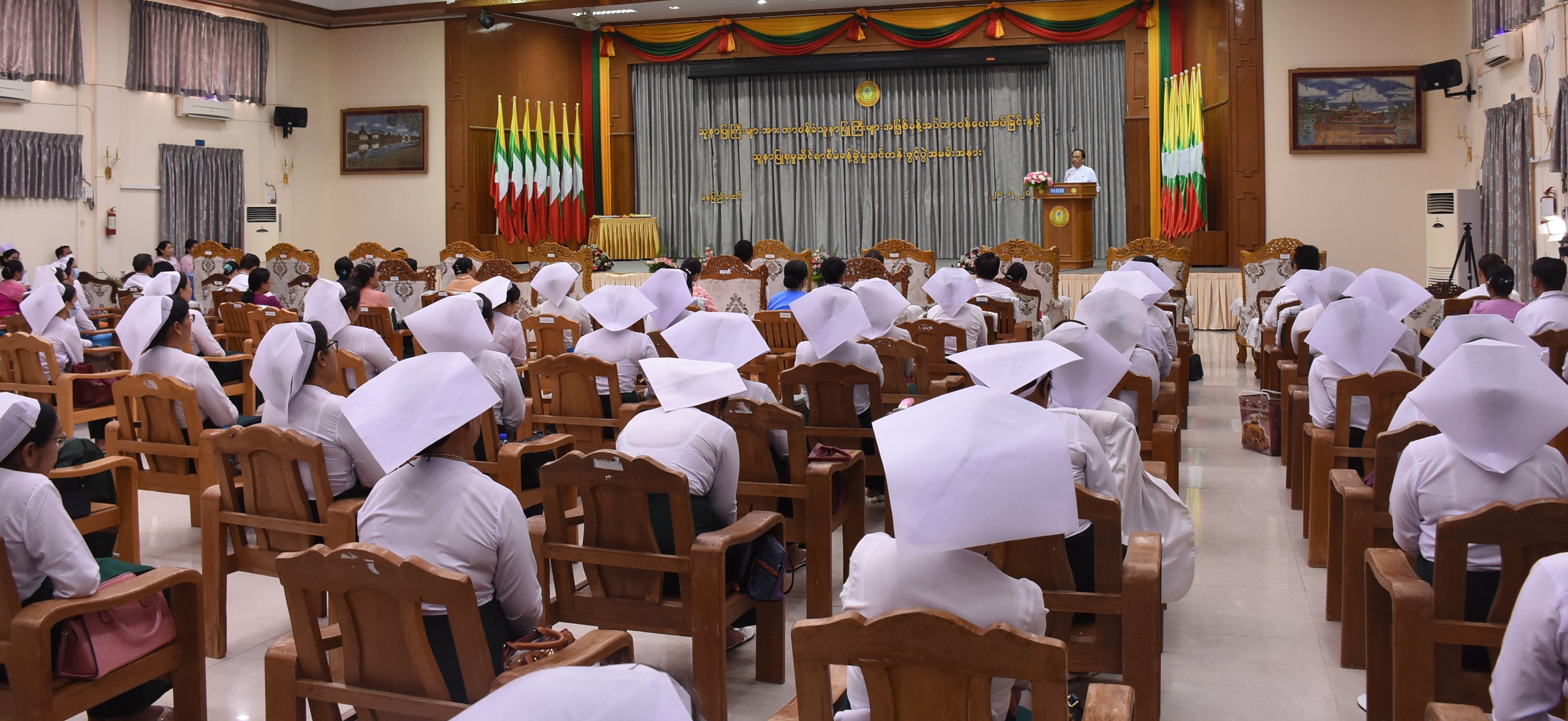 ကျန်းမာရေးဝန်ကြီးဌာန သူနာပြုကြီးများအား တာဝန်ခံသူနာပြုကြီး၊ ပြန်တမ်းဝင်အရာရှိများအဖြစ် ခန့်အပ်တာဝန်ပေးအပ်ခြင်းနှင့် သူနာပြုစုမှုဆိုင်ရာ စီမံခန့်ခွဲမှုသင်တန်း ဖွင့်ပွဲအခမ်းအနားကို ယနေ့နံနက်ပိုင်းတွင် နေပြည်တော်ရှိ ကျန်းမာရေးဝန်ကြီးဌာန၌ ကျင်းပသည်။
