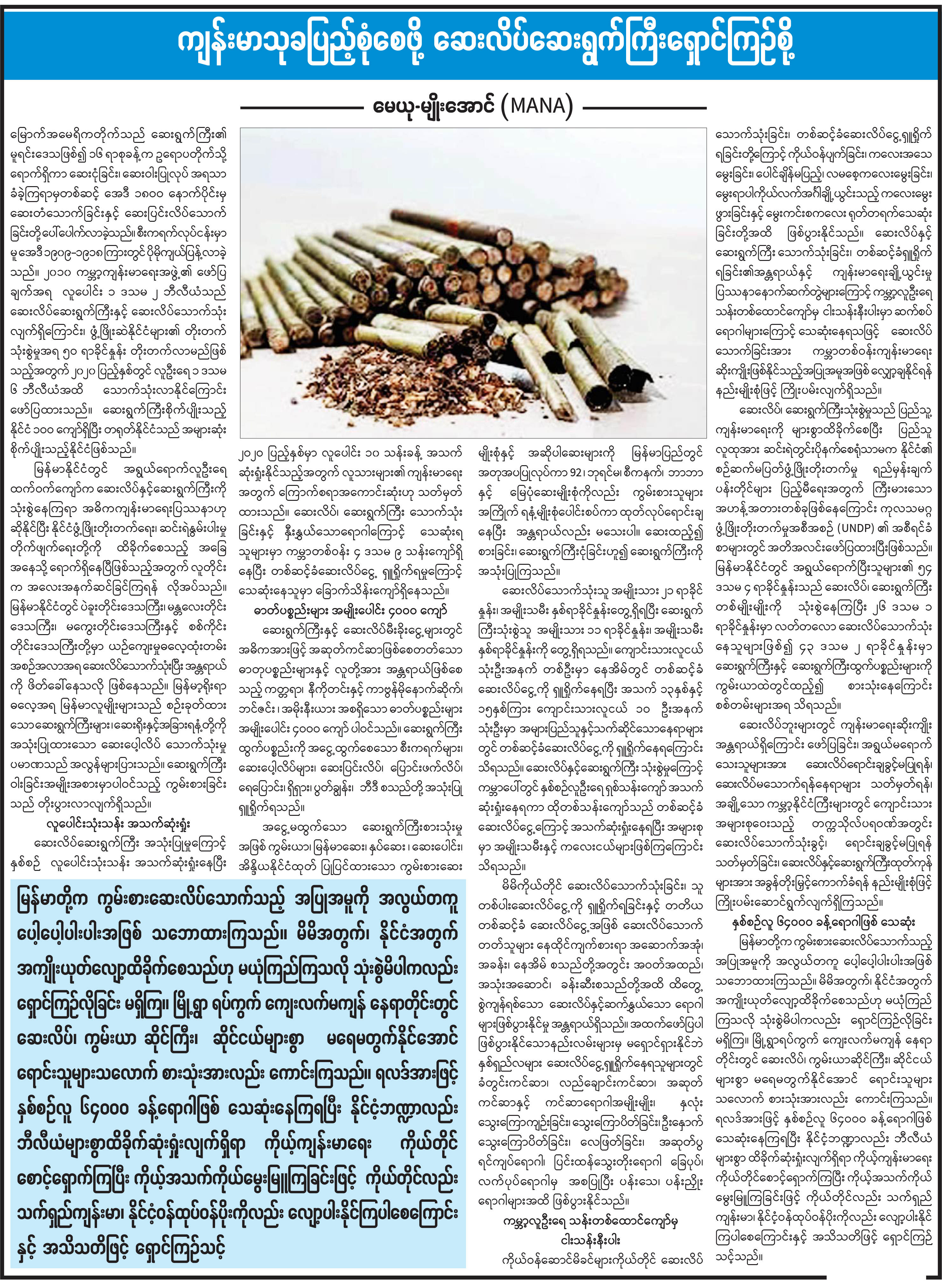 ကျန်းမာသုခပြည့်စုံစေဖို့ ဆေးလိပ် ဆေးရွက်ကြီး ရှောင်ကြဉ်ကြစို့
