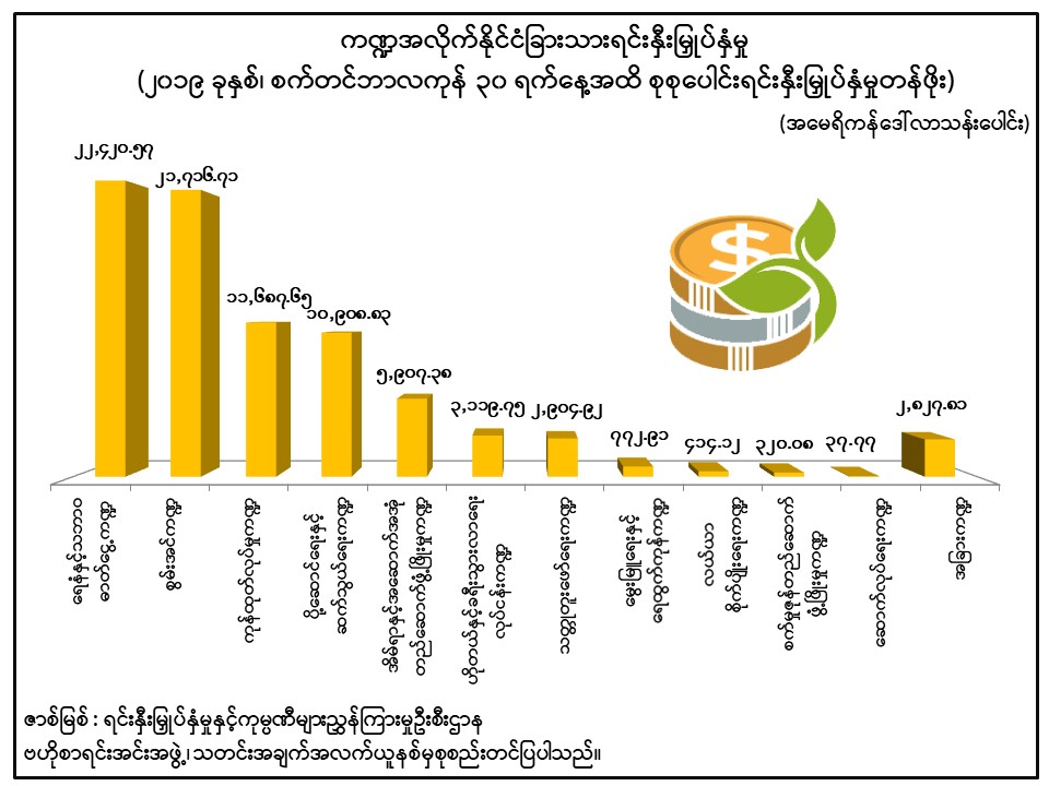 ကဏ္ဍအလိုက်နိုင်ငံခြားသားရင်းနှီးမြှုပ်နှံမှု (၂၀၁၉ ခုနှစ်၊ ဒီဇင်ဘာလကုန် ၃၁ ရက်နေ့အထိ စုစုပေါင်းရင်းနှီးမြှုပ်နှံမှုတန်ဖိုး)