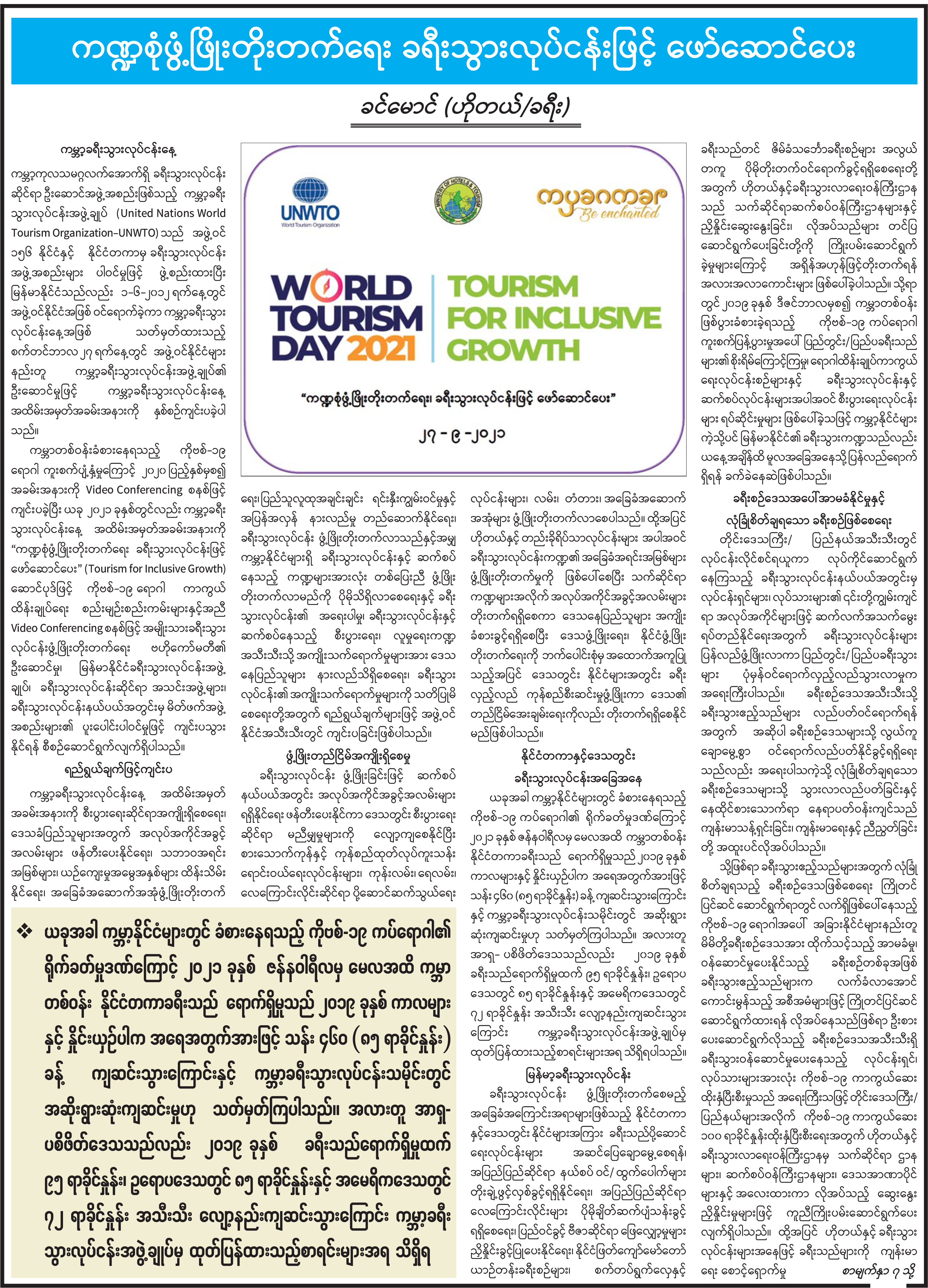 ကဏ္ဍစုံဖွံ့ဖြိုးတိုးတက်ရေး ခရီးသွားလုပ်ငန်းဖြင့် ဖော်ဆောင်ပေး