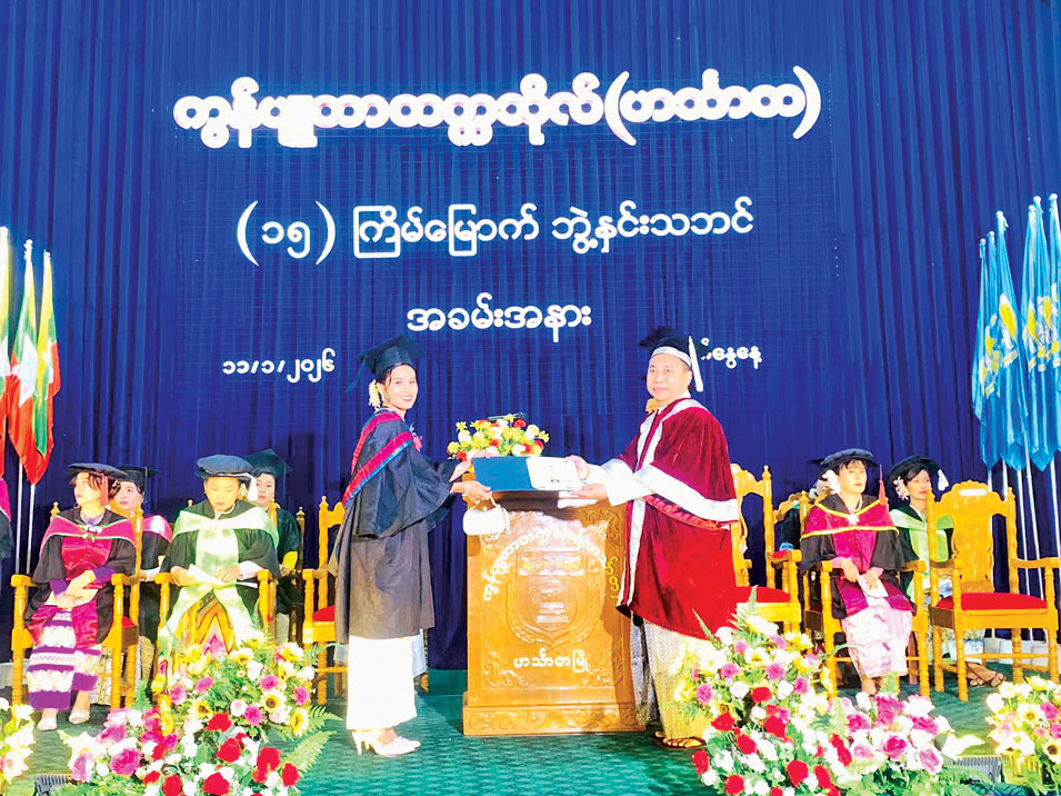 ဧရာဝတီတိုင်းဒေသကြီး ဟင်္သာတမြို့နယ်၌ ကွန်ပျူတာတက္ကသိုလ် (ဟင်္သာတ)၏ (၁၅)ကြိမ်မြောက် ဘွဲ့နှင်းသဘင် အခမ်းအနားကို ယမန်နေ့ နံနက် ၉ နာရီက တာငါးဆယ်တောင် ရပ်ကွက် ကရင်ကျောင်းလမ်းရှိ ကွန်ပျူတာတက္ကသိုလ်(ဟင်္သာတ) ဘွဲ့နှင်းသဘင်ခန်းမတွင် ကျင်းပသည်။