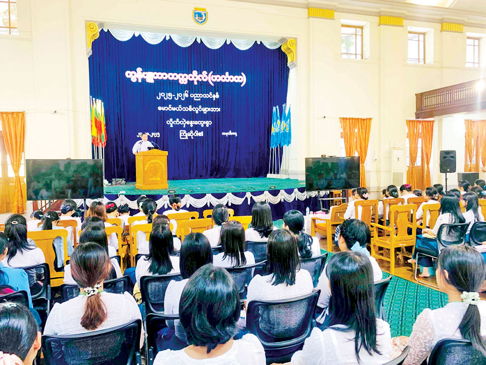 အခမ်းအနားတွင် ဒုတိယပါမောက္ခချုပ် ဒေါက်တာထွန်းမြတ်အောင်က အမှာစကားပြောကြားသည်။ ထို့နောက် သင်တန်းရေးရာဌာနမှူးက ကျောင်းစည်းကမ်းများ၊ စာမေးပွဲဆိုင်ရာစည်းကမ်းများ၊ ကျောင်းသား ကျောင်းသူများ၏ အခွင့်အရေးများကို ပြောကြားသည်။ ထို့နောက် ဒေါက်တာထွန်းမြတ်အောင်နှင့် ဌာနမှူးများက မောင်မယ်သစ်လွင်များအား ရင်းရင်းနှီးနှီး လိုက်လံနှုတ်ဆက်ခဲ့ကြောင်း သိရသည်။