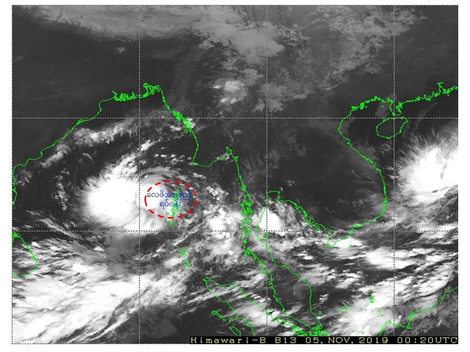 ယနေ့မြန်မာစံတော်ချိန် ၆ နာရီခွဲအချိန်တွင် တိုင်းထွာရရှိသည့် မိုးလေဝသအချက်အလက်များကို မိုးလေဝသနှင့်ဇလဗေဒ ညွှန်ကြားမှုဦးစီးဌာနမှ ထုတ်ပြန်ခဲ့ရာ ကပ္ပလီပင်လယ်ပြင်မြောက်ပိုင်းတွင် ဖြစ်ပေါ်နေသော လေဖိအားနည်းရပ်ဝန်းသည် ဆက်လက်တည်ရှိနေပါသည်။ အဆိုပါ လေဖိအားနည်းရပ်ဝန်းသည် အနောက်မြောက်ဘက်သို့ ရွေ့လျားကာ ပိုမိုအားကောင်းလာနိုင်ပြီး နောက်(၆)နာရီအတွင်း ဘင်္ဂလားပင်လယ်အော်အရှေ့အလယ်ပိုင်းတွင် မုန်တိုင်းငယ်(Depression) အဖြစ်သို့ ရောက်ရှိလာနိုင်ပါသည်။ ဘင်္ဂလားပင်လယ်အော်မြောက်ပိုင်းတွင် တိမ်အနည်းငယ် ဖြစ်ထွန်းနေပြီး၊ ကပ္ပလီ ပင်လယ်ပြင်နှင့် ကျန်ဘင်္ဂလားပင်လယ်အော်တို့တွင် တိမ်အသင့်အတင့်မှ တိမ်ထူထပ်နေပါသည်။