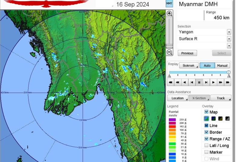မိုးတိမ်တောင်ဖြစ်ပေါ်မှုအခြေအနေ။ နေပြည်တော်၊ တနင်္သာရီတိုင်းဒေသကြီး၊ ကချင်ပြည်နယ်၊ ရှမ်းပြည်နယ်နှင့် ကယားပြည်နယ်တို့တွင် မိုးတိမ်တောင်များဖြစ်ထွန်းမှု အားကောင်းလျက်ရှိပါသည်။