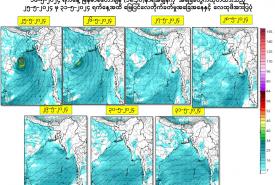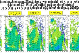 DMH-WRF Model ၏ ၁၆-၅-၂၀၂၄ ရက်နေ့ မြန်မာစံတော်ချိန် (၀၆:၃၀)နာရီအချိန်ကို အခြေခံတွက်ထုတ်ထားသည့် ခန့်မှန်းချက်များအရ ၂၂-၅-၂၀၂၄ ရက်နေ့ခန့်တွင် ဘင်္ဂလားပင်လယ်အော်တောင်ပိုင်းတွင်   လေထုမငြိမ်   မသက်မှုအခြေအနေစတင်    ဖြစ်ပေါ်နိုင်ပြီး၊ ၂၃-၅-၂၀၂၄ ရက်နေ့ခန့်တွင် လေဖိအားနည်းရပ်ဝန်း စတင်ဖြစ်ပေါ်လာနိုင်ပါသည်။ အဆိုလေဖိအားနည်းရပ်ဝန်းသည် ပိုမိုအားကောင်းလာနိုင်ပြီး ကနဦးတွင် မြောက်-အရှေ့မြောက်ဘက်သို့ ရွေ့လျားပြီးနောက် မြောက်-အနောက်မြောက်ဘက်သို့ပြန်ကွေ့ကာ၊          ၂၇-၅-၂၀၂၄ ရက်နေ့ခန့်တွင် အိန္ဒိယနိုင်ငံနှင့် ဘင်္ဂလားဒေ့ရှ်ကမ်းရိုးတန်းတို့အကြားသို့ ဦးတည်ရွေ့လျားနိုင်သည်ကို တွေ့ရှိရပါသည်။