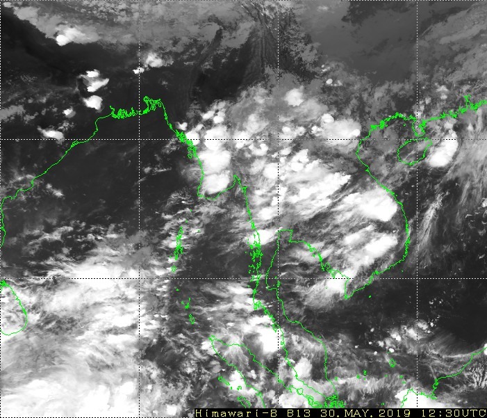 ၂၀၁၉ ခုနှစ်၊ မေလ (၃၀)ရက်နေ့ ည(၇:ဝ၀)နာရီအချိန် မိုးဇလမှ ထုတ်ပြန်ချက်အရ ကပ္ပလီပင်လယ်ပြင်နှင့် ဘင်္ဂလားပင်လယ်အော်အရှေ့တောင်ပိုင်းတို့တွင် မုတ်သုံလေ အားအသင့်အတင့်ရှိနေပြီး၊ ကျန်ဘင်္ဂလားပင်လယ်အော်တွင် တိမ်အသင့်အတင့်မှ တိမ်ထူထပ်နေပါသည်။