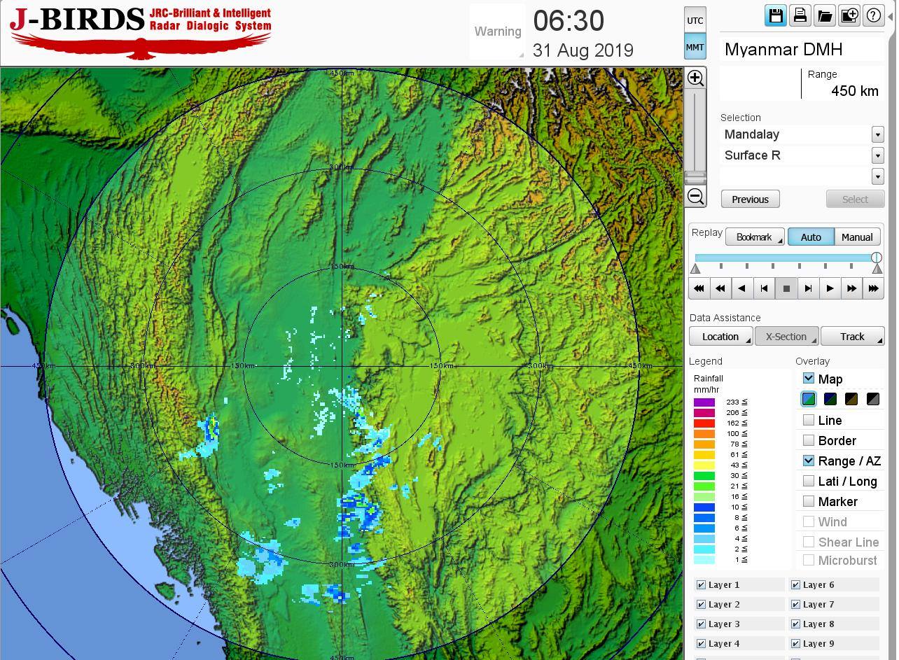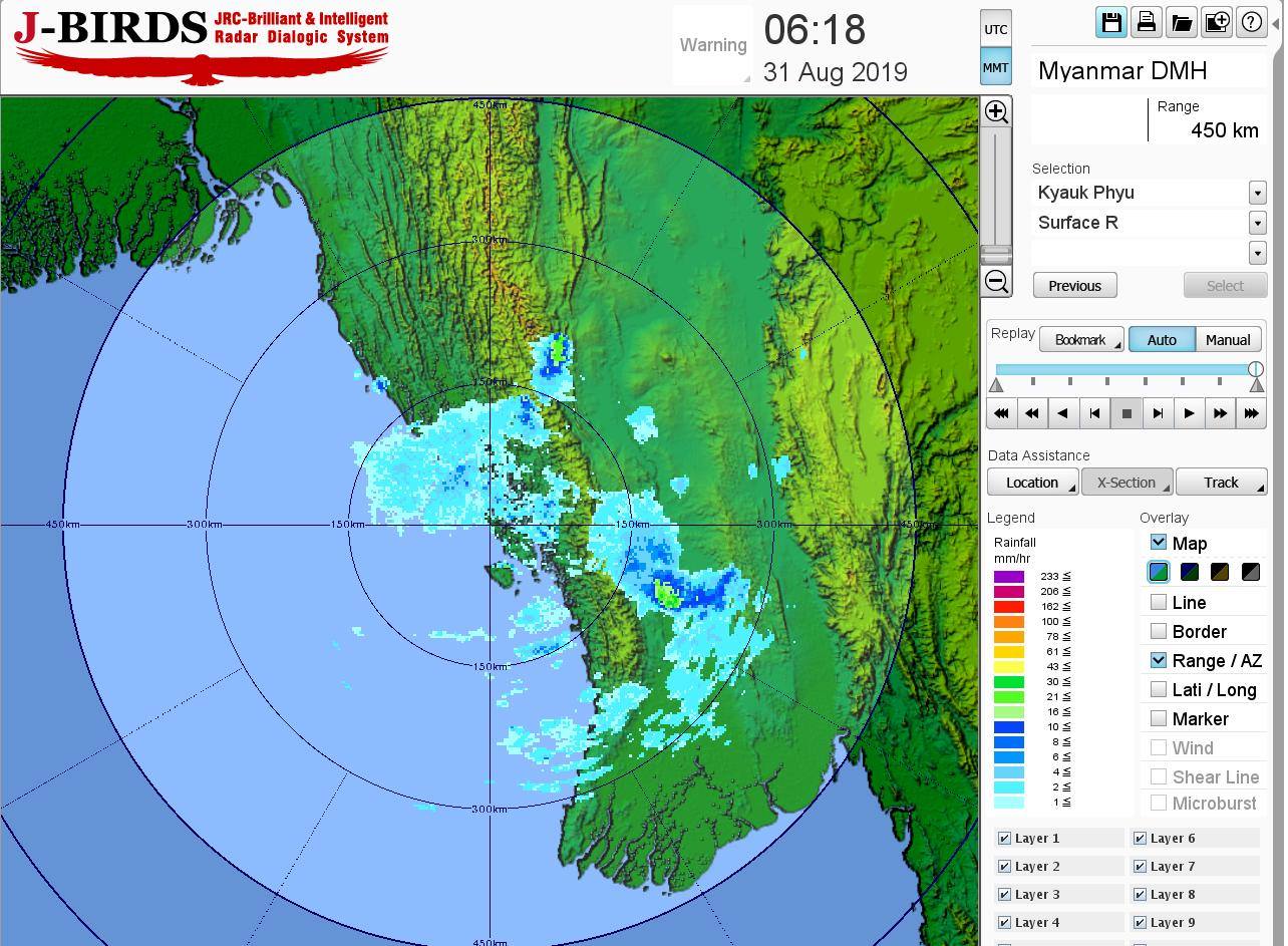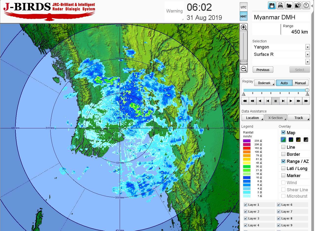 ယနေ့ညနေအထိခန့်မှန်းချက်အနေဖြင့် စစ်ကိုင်းတိုင်းဒေသကြီး၊ မန္တလေးတိုင်းဒေသကြီး၊ မကွေးတိုင်းဒေသကြီး၊ ကချင်ပြည်နယ်၊ ရှမ်းပြည်နယ် (တောင်ပိုင်းနှင့် အရှေ့ပိုင်း)၊ ချင်းပြည်နယ်နှင့် ရခိုင်ပြည်နယ်တို့တွင် နေရာစိပ်စိပ်နှင့် ကျန်တိုင်းဒေသကြီးနှင့် ပြည်နယ်တို့တွင် နေရာအနှံ့အပြား မိုးထစ်ချုန်းရွာပြီး၊ နေပြည်တော်၊ မကွေးတိုင်းဒေသကြီး၊ တနင်္သာရီတိုင်းဒေသကြီး၊ ကရင်ပြည်နယ်နှင့် မွန်ပြည်နယ်တို့တွင် ဒေသအလိုက်နှင့် စစ်ကိုင်းတိုင်းဒေသကြီး အောက်ပိုင်း၊ မန္တလေးတိုင်းဒေသကြီး၊ ပဲခူးတိုင်းဒေသကြီး၊ ရန်ကုန်တိုင်း ဒေသကြီး၊ ဧရာဝတီတိုင်းဒေသကြီးနှင့် ကယားပြည်နယ်တို့တွင် နေရာကွက်၍ မိုးကြီးနိုင်သည်။ ရွာရန် ရာနှုန်းပြည့် ဖြစ်သည်။