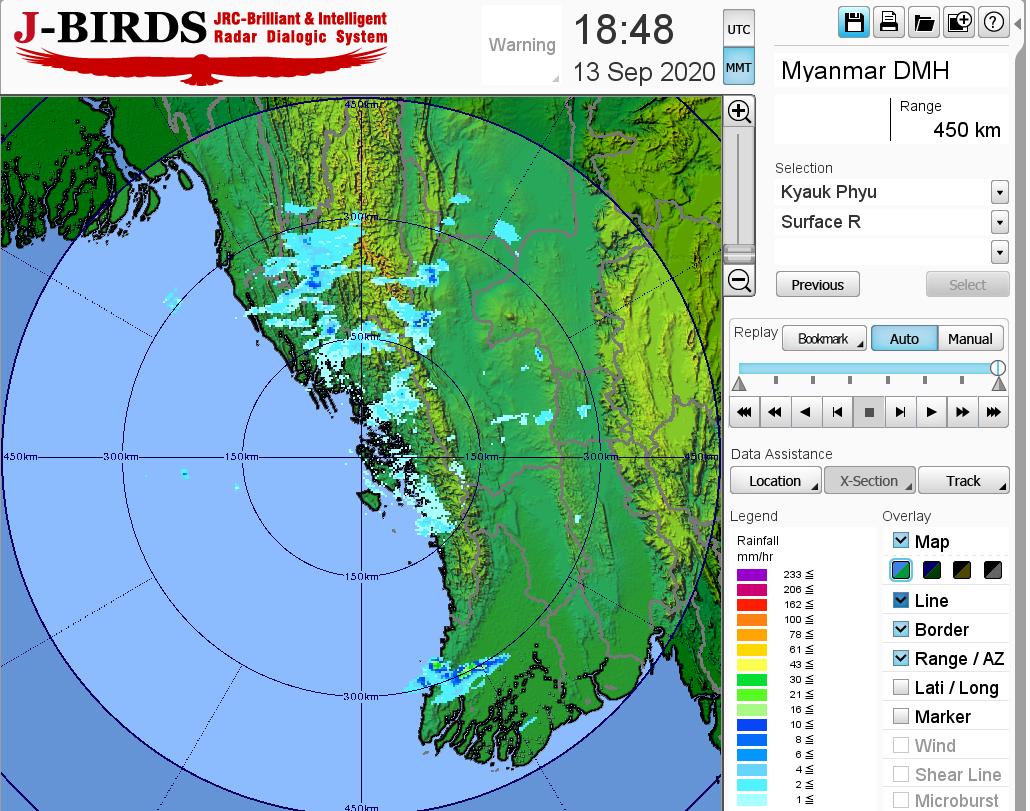 မိုးလေဝသနှင့်ဇလဗေဒညွှန်ကြားမှုဦးစီးဌာနမှ စက်တင်ဘာလ ၁၃ ရက်နေ့ ည ၇ နာရီအချိန်တွင် နေ့စဉ်မိုးလေဝသသတင်း ထုတ်ပြန်ရာ ဘင်္ဂလားပင်လယ်အော်အခြေအနေမှာ ယနေ့မြန်မာစံတော်ချိန် (၁၈:၃၀)နာရီအချိန် တိုင်းထွာချက်များအရ ဘင်္ဂလားပင်လယ်အော်အနောက်အလယ်ပိုင်း(အိန္ဒိယနိုင်ငံ၊ အင်ဒရာပရာဒေ့ရှ်မြောက်ပိုင်းကမ်းလွန်)တွင် ဖြစ်ပေါ်နေသော လေဖိအားနည်းရပ်ဝန်းသည် ဆက်လက်တည်ရှိနေပါသည်။ ကပ္ပလီပင်လယ်ပြင်နှင့် ဘင်္ဂလားပင်လယ်အော်တောင်ပိုင်းတို့တွင် မုတ်သုံလေ အားအနည်းငယ်မှ အားအသင့်အတင့် ရှိနေပြီး၊ ကျန်ဘင်္ဂလားပင်လယ်အော်တွင် မုတ်သုံလေ အားနည်းနေပါသည်။