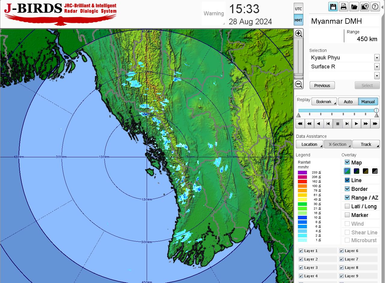 မိုးတိမ်တောင်ဖြစ်ပေါ်မှုအခြေအနေ။ နေပြည်တော်၊ စစ်ကိုင်းတိုင်းဒေသကြီးအထက်ပိုင်း၊ မကွေးတိုင်းဒေသကြီး၊ ပဲခူးတိုင်းဒေသကြီး၊ ရန်ကုန်တိုင်းဒေသကြီး၊ ဧရာဝတီတိုင်းဒေသကြီး၊ တနင်္သာရီတိုင်းဒေသကြီး၊ ချင်းပြည်နယ်၊ ရခိုင်ပြည်နယ်၊ ကယားပြည်နယ်၊ ကရင်ပြည်နယ်နှင့် မွန်ပြည်နယ်တို့တွင် မိုးတိမ်တောင်များ ဖြစ်ထွန်းလျက်ရှိပါသည်။