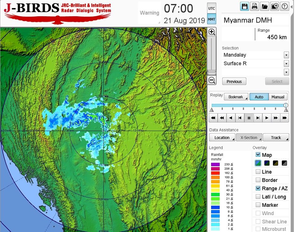 မန္တလေးမြို့နှင့်အနီးတစ်ဝိုက်အတွက် ယနေ့ညနေအထိခန့်မှန်းချက်မှာ နေရာကွက်ကျား မိုးထစ်ချုန်းရွာ မည်။ ရွာရန်ရာနှုန်းပြည့် ဖြစ်ပါသည်။