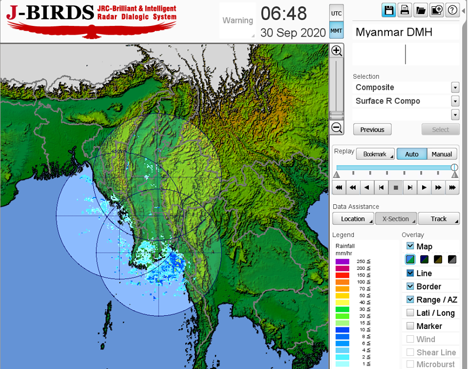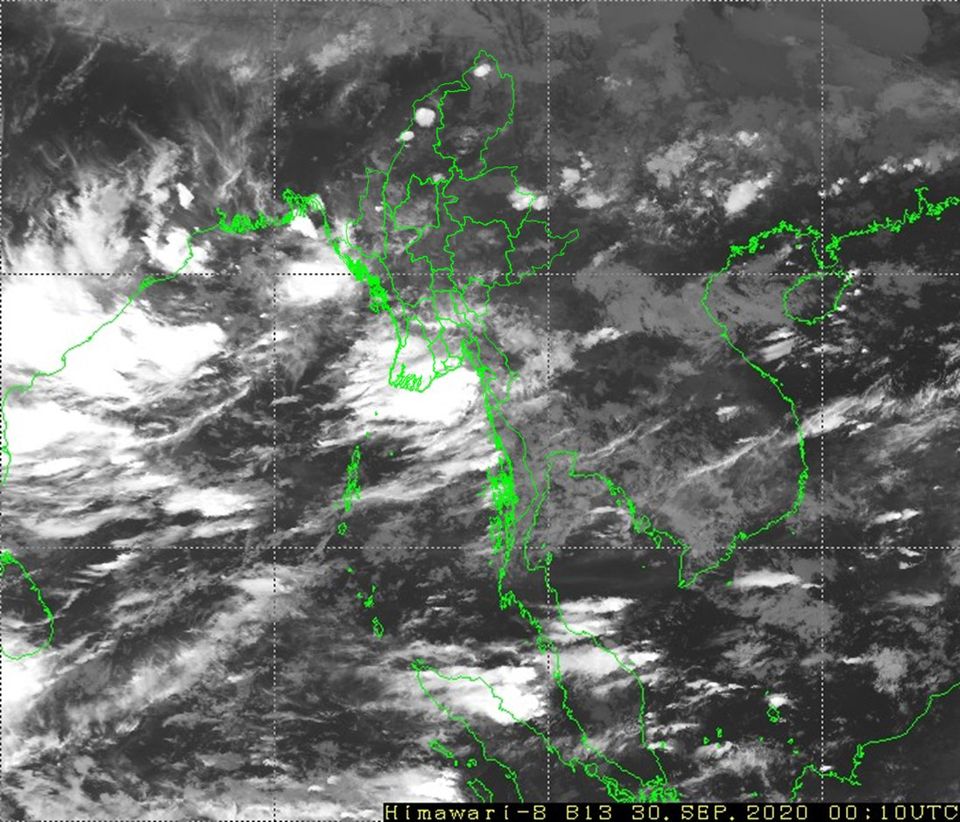 ဘင်္ဂလားပင်လယ်အော်အ‌ခြေအနေ။ ဘင်္ဂလားပင်လယ်အော်မြောက်ပိုင်းတွင် တိမ်အသင့်အတင့် ဖြစ်ထွန်း နေပါသည်။ ကပ္ပလီပင်လယ်ပြင်နှင့်