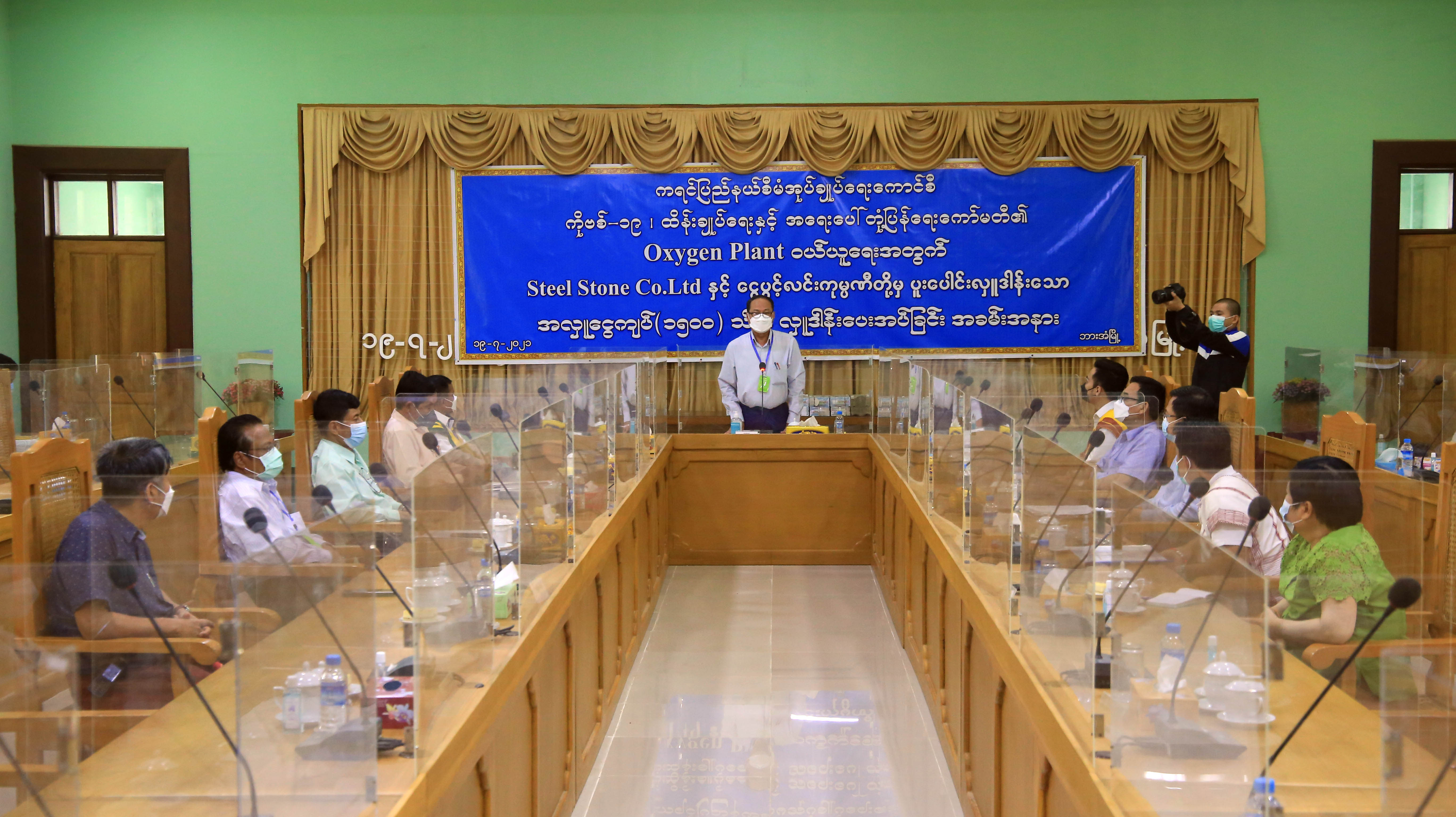 ကရင်ပြည်နယ်စီမံအုပ်ချုပ်ရေးကောင်စီ ကိုဗစ်-၁၉ ထိန်းချုပ်ရေးနှင့်အရေးပေါ်တုံ့ပြန်ရေးကော်မတီ၏ အောက်ဆီဂျင်စက် ဝယ်ယူရေးအတွက် Steel Stone Co.,Ltd နှင့် ငွေပွင့်လင်းကုမ္ပဏီတို့မှ အလှူငွေကျပ် သိန်း(၁၅၀၀) ပေးအပ် လှူဒါန်းသည့်အခမ်းအနားကို ဇူလိုင်လ ၁၉ ရက်နေ့ နံနက် ၁၀ နာရီခန့်က ပြည်နယ်စီမံအုပ်ချုပ်ရေးကောင်စီရုံး အစည်းအဝေးခန်းမ(၂)၌ ကျင်းပသည်။