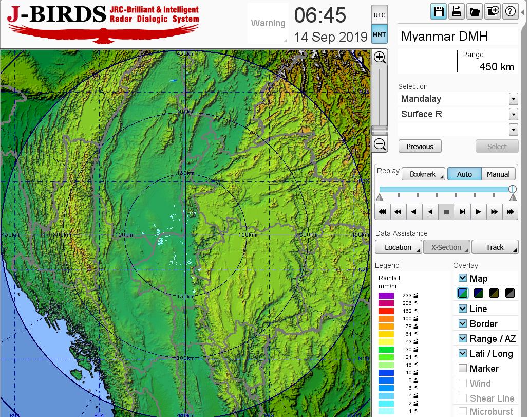 ယနေ့ညနေအထိ ခန့်မှန်းချက်အနေဖြင့် နေပြည်တော်၊ စစ်ကိုင်းတိုင်းဒေသကြီးအောက်ပိုင်း၊ မန္တလေးတိုင်းဒေသကြီး၊ မကွေးတိုင်းဒေသကြီး၊ ရှမ်းပြည်နယ်(မြောက်ပိုင်းနှင့် အရှေ့ပိုင်း)နှင့် ကယားပြည်နယ်တို့တွင် နေရာကွက်ကျား၊ စစ်ကိုင်းတိုင်းဒေသကြီးအထက်ပိုင်း၊ ပဲခူးတိုင်းဒေသကြီး၊ ရန်ကုန်တိုင်းဒေသကြီး၊ ဧရာဝတီတိုင်းဒေသကြီး၊ ရှမ်းပြည်နယ်(တောင်ပိုင်း)၊ ချင်းပြည်နယ်နှင့် ရခိုင်ပြည်နယ်တို့တွင် နေရာစိပ်စိပ်နှင့် ကျန်တိုင်း ဒေသကြီးနှင့် ပြည်နယ်တို့တွင် နေရာအနှံ့အပြား မိုးထစ်ချုန်းရွာပြီး၊ ကရင်ပြည်နယ်နှင့် မွန်ပြည်နယ်တို့တွင် နေရာကွက်၍ မိုးကြီးနိုင်သည်။ ရွာရန်ရာနှုန်းပြည့် ဖြစ်သည်။
