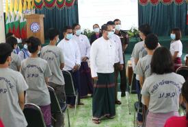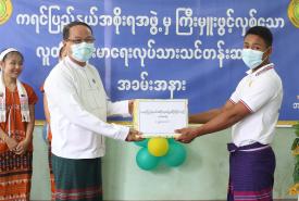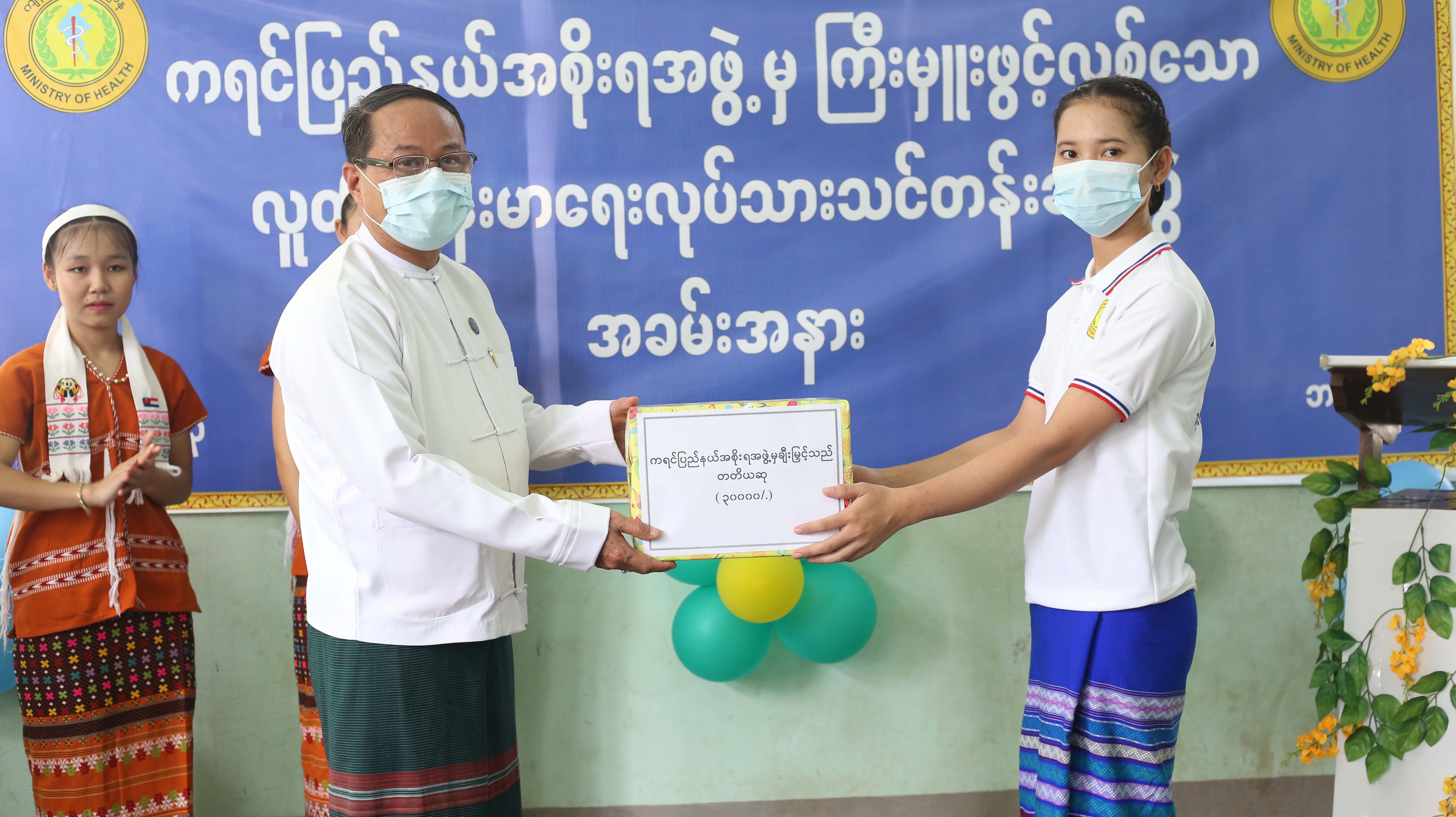 ဆက်လက်၍ ဘားအံမြို့နယ်၊ တရုတ်လှတိုက်နယ်ဆေးရုံ၌ ကျင်းပသည့် လူထုကျန်းမာရေး လုပ်သား သင်တန်းဆင်းပွဲကို တက်ရောက်ကာ သင်တန်းတွင် ထူးချွန်စွာအောင်မြင်ခဲ့သော သင်တန်းသား သင်တန်းသူ သုံးဦးအား ဂုဏ်ပြုဆုများကို လည်းကောင်း၊ သင်တန်းတွင် သင်ကြားပို့ချပေးသော ဆရာ၊ ဆရာမများအား ဂုဏ်ပြုလက်ဆောင်များကိုလည်းကောင်း၊ လူထုကျန်းမာရေး လုပ်သားမောင်မယ်များအား လူထုကျန်းမာရေးလုပ်သားဝတ်စုံများကိုလည်းကောင်း ပေးအပ်ချီးမြှင့်ခဲ့သည်။