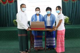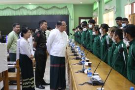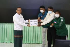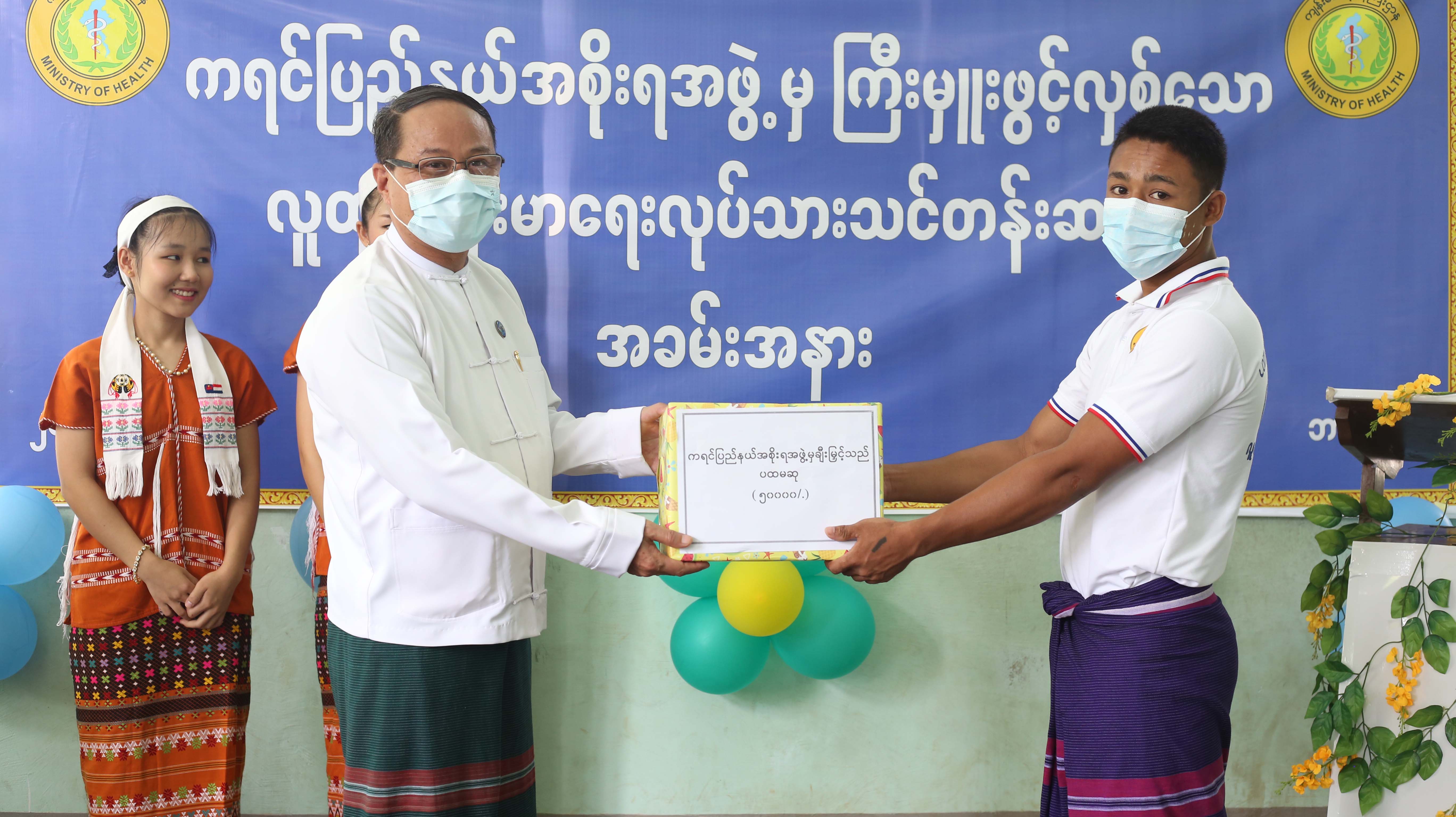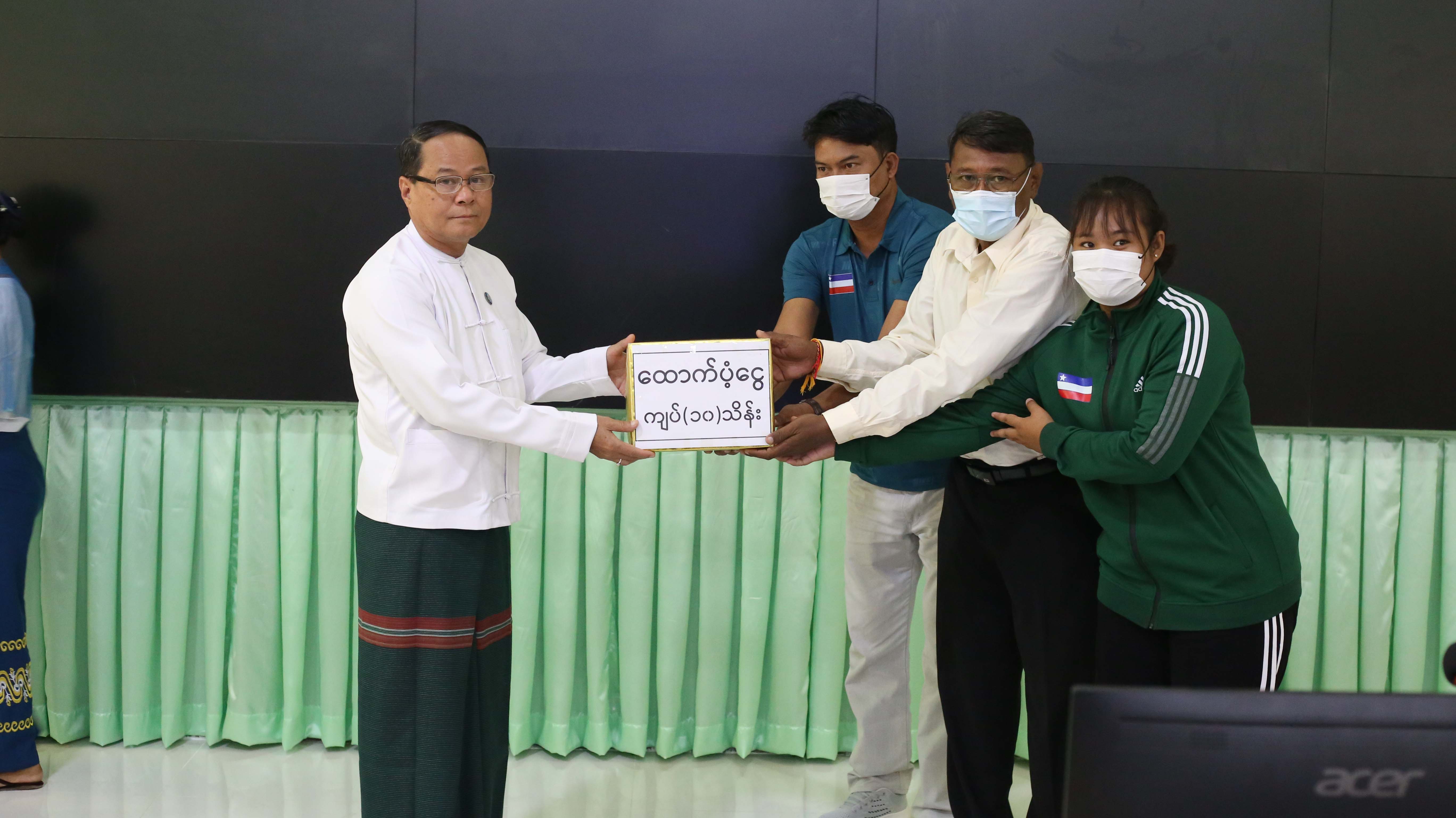 ပြည်နယ်ဝန်ကြီးချုပ်က ကရင်ပြည်နယ် ပြေးခုန်ပစ်အသင်းထံ အောင်နိုင်ရေးအလံနှင့် ထောက်ပံငွေ ကျပ် ၁၀ သိန်း၊ ပြည်နယ်ပညာရေးမှူးရုံးမှ ထောက်ပံ့ငွေကျပ် နှစ်သိန်းနှင့် ဇော်သက္ကကုမ္ပဏီမှ ထောက်ပံငွေကျပ် ငါးသိန်းတို့ကို ပေးအပ်ရာ ပြည်နယ်ပြေးခုန်ပစ်အသင်း အုပ်ချုပ်/နည်းပြအဖွဲ့များက လက်ခံရယူကြသည်။ ယင်းနောက် ပြည်နယ်ဝန်ကြီးချုပ်၊ ပြည်နယ်တရားလွှတ်တော် တရားသူကြီးချုပ်၊ ပြည်နယ်အစိုးရအဖွဲ့ဝင်များက မေ ၂၉ ရက်မှ ဇွန် ၂ ရက်အထိ နေပြည်တော်တွင် ကျင်းပပြုလုပ်မည့် ပြည်နယ်နှင့်တိုင်းဒေသကြီး U-18 ပြေးခုန်ပစ်ပြိုင်ပွဲသို့ ဝင်ရောက်ယှဉ်ပြိုင်မည့် အားကစားသမား ၂၂ ဦးနှင့် နည်းပြ/အုပ်ချုပ်သူ ငါးဦးတို့အား တစ်ဦးချင်း ရင်းရင်းနှီးနှီးတွေ့ဆုံ၍ အားပေးစကားများ ပြောကြားသည်။