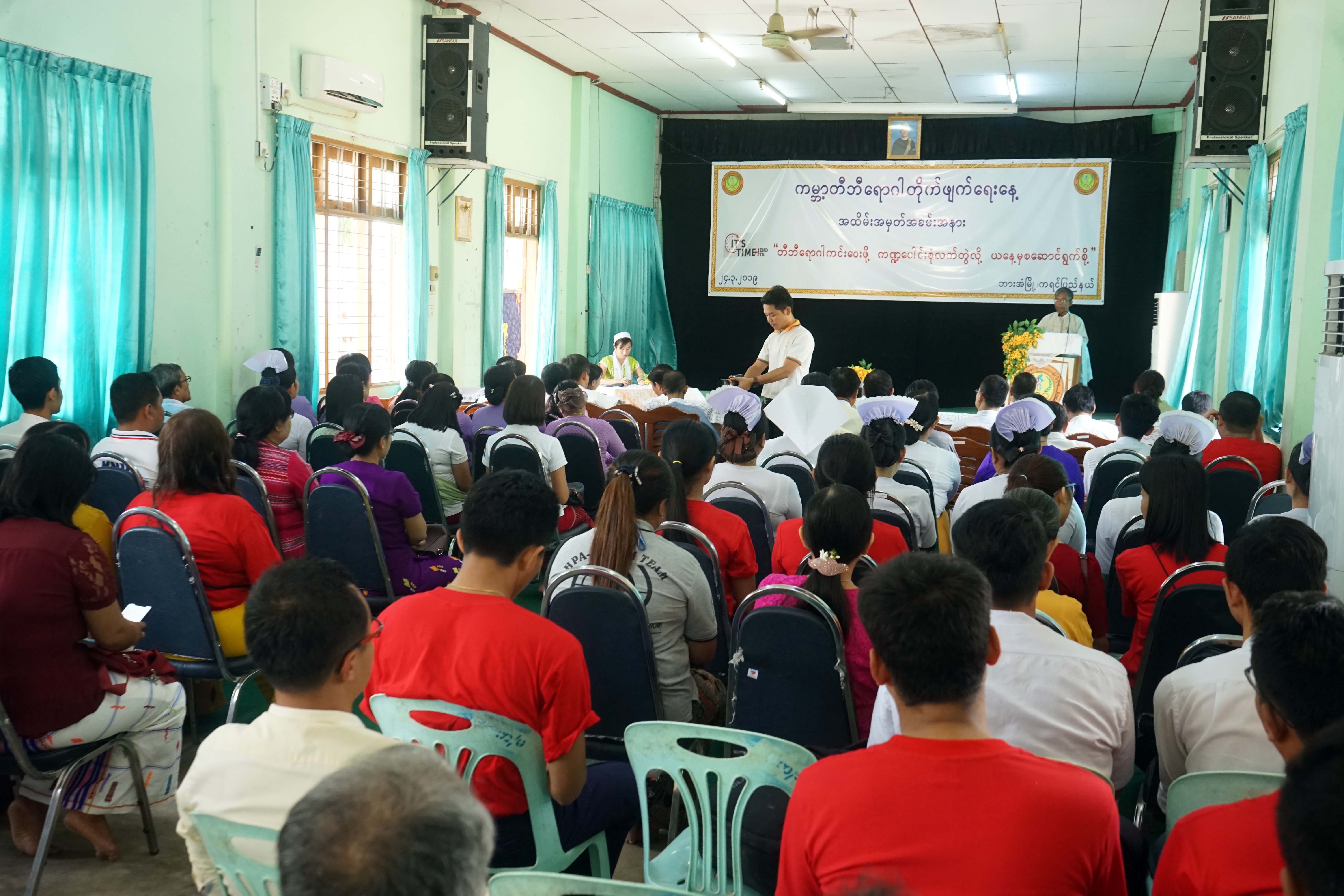အဆိုပါအခမ်းအနားကို ῝ တီဘီရောဂါကင်းဝေးဖို့ ကဏ္ဍပေါင်းစုံလက်တွဲလို့ ယနေ့မှစဆောင်ရွက်စို့῍ ဆောင်ပုဒ်ဖြင့်ကျင်းပခြင်းဖြစ်ပြီး တီဘီရောဂါရှာဖွေကုသသည့်အပိုင်းကို တီဘီတိုက်ဖျက်ရေးဌာနမှ သလိပ်စစ်ပေးခြင်း ဓါတ်မှန်ရိုက်ပေးခြင်း၊ကွင်းဆင်းရှာဖွေခြင်းများဆောင်ရွက်လျက်ရှိကြောင်း၊ ကွင်းဆင်းရှာဖွေရာတွင်မိတ်ဖက်အဖွဲ့အစည်း များဖြင့်ပူးပေါင်း၍ တိုင်းရင်းသားလူမျိုးများနေထိုင်ရာ ဝေလံခေါင်ပါးပြီး သွားလာရမလွယ်ကူသည့် နေရာဒေသများထိ ရွှေ့လျားတီဘီနယ်လှည့်အဖွဲ့များဖြင့်သွားရောက်၍ဝေဒနာရှင်များအားရှာဖွေကုသပေးခြင်း၊ ကျန်းမာရေးအသိပညာပေး ဟောပြောပွဲများကျင်းပ၍ တားဆီးရေးလုပ်ငန်းများဆောင်ရွက်လျက်ရှိပြီး ဝေဒနာရှင်များကို တွေ့ရှိသည်နှင့် တစ်ရက် နှစ်ရက်အတွင်း တီဘီဆေးကို စတင်တိုက်ကျွေးကြောင်း၊ ဆေးကိုလည်းအလုံအလောက်ဖြင့် One Stop Service ဝန်ဆောင်မှုပေးနေကြောင်း သိရသည်။