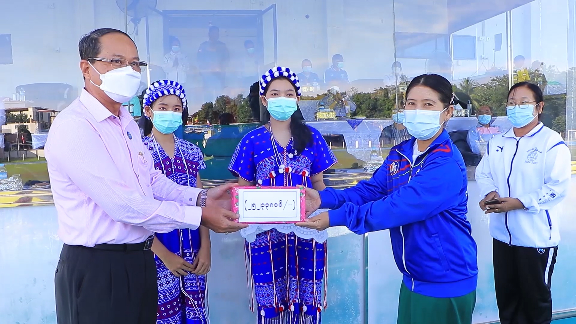 ထို့နောက် ကရင်ပြည်နယ်ဝန်ကြီးချုပ်က အခြေခံပညာကျောင်းသားအားကစားပြိုင်ပွဲ ကုန်ကျစရိတ်ငွေကျပ် ၂၅၂၃၂၈၀၀ ကို ပြည်နယ်ပညာရေးမှူးရုံးမှ ညွှန်ကြားရေးမှူး ဒေါ်နန့်စယ်လီလှိုင်ထံ ပေးအပ်ချီးမြှင့်ပြီး ကျောင်းသားအားကစားသမားအဖွဲ့များအား ငွေကျပ် ၂၇၉၂၀၀၀၀ ကို သက်ဆိုင်ရာမြို့နယ်အလိုက် ခွဲဝေပေးအပ်ချီးမြှင့်ခဲ့ကာ ပြည်နယ်ဥပဒေချုပ် ဦးရဲလွင်က အခမ်းအနားတွင် တီးမှုတ်ဖျော်ဖြေပေးသော အမှတ်(၃)အခြေခံပညာ အထက်တန်းကျောင်းမှ ဘင်ခရာ၊ ပန်းပွားအဖွဲ့များအား ဂုဏ်ပြုငွေများ ပေးအပ်ချီးမြှင့်သည်။