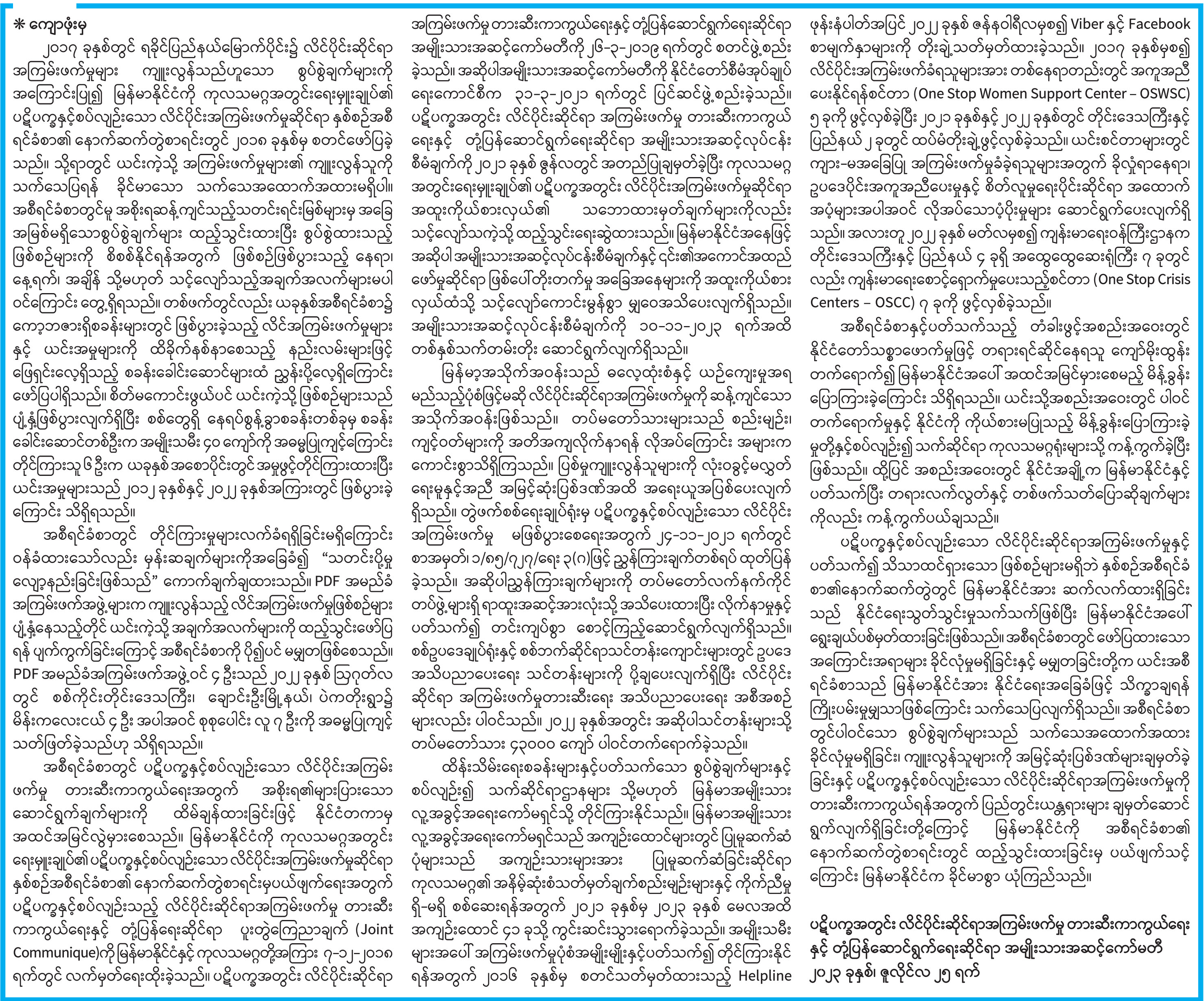 ကုလသမဂ္ဂအတွင်းရေးမှူးချုပ်၏ ပဋိပက္ခအတွင်း လိင်အကြမ်းဖက်မှုဆိုင်ရာ အစီရင်ခံစာနှင့် တံခါးဖွင့်ဆွေးနွေးပွဲတို့အပေါ် မြန်မာနိုင်ငံ၏ တုံ့ပြန်ချက်