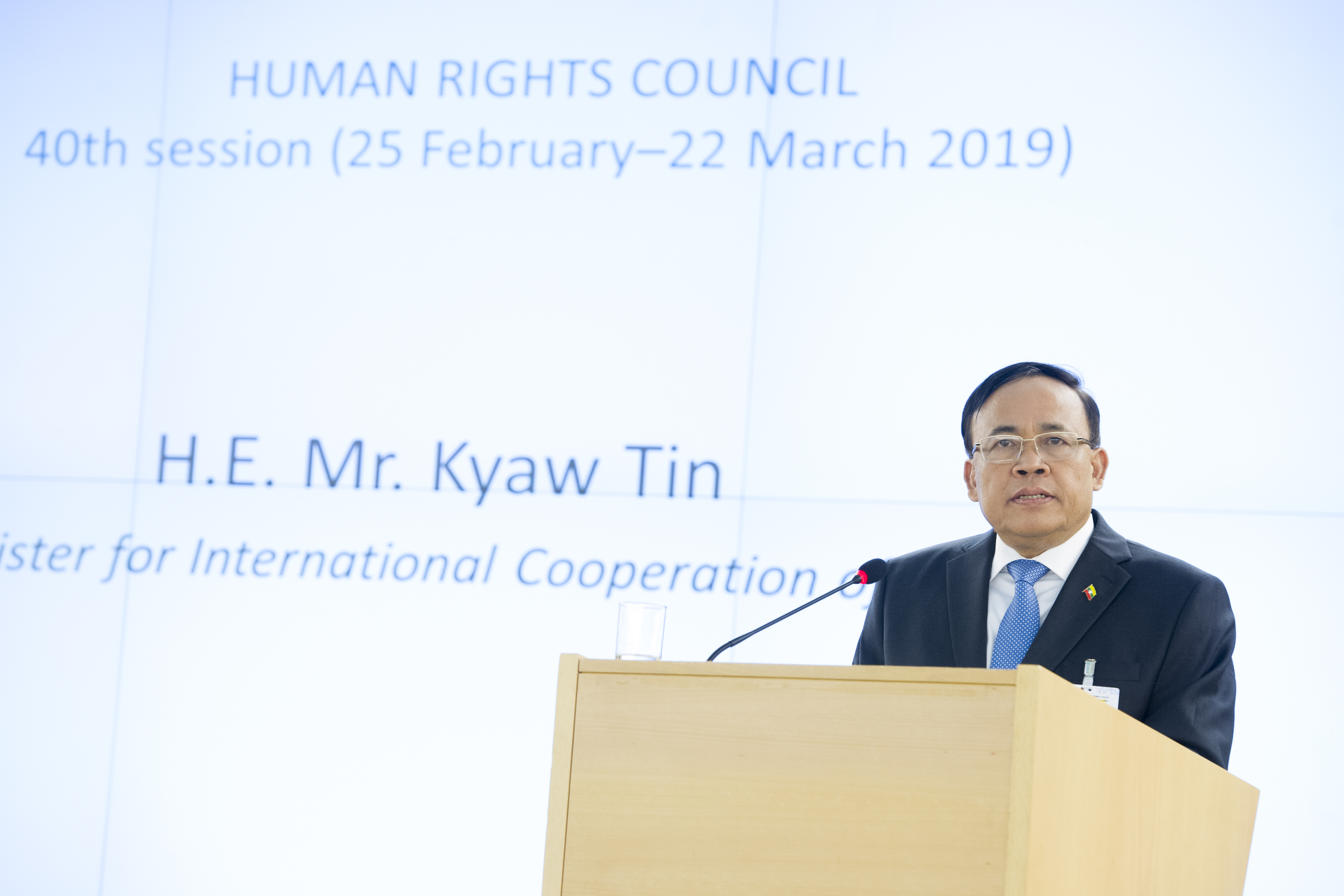 ဆွစ်ဇာလန်နိုင်ငံ၊ ဂျီနီဗာမြို့တွင် ဖေဖော်ဝါရီ ၂၅ မှ ၂၇ ရက်အထိ ကျင်းပသည့် လူ့အခွင့်အရေးကောင်စီ၏ အကြိမ် (၄၀) မြောက် ပုံမှန်အစည်းအဝေးအဆင့်မြင့်ကဏ္ဍသို့ အပြည်ပြည်ဆိုင်ရာ ပူးပေါင်းဆောင်ရွက်ရေးဝန်ကြီးဌာန၊ ပြည်ထောင်စုဝန်ကြီး ဦးကျော်တင် တက်ရောက်ခဲ့ပြီး ဖေဖော်ဝါရီ ၂၆ ရက်က မိန့်ခွန်းတစ်ရပ် ပြောကြားခဲ့သည်။
