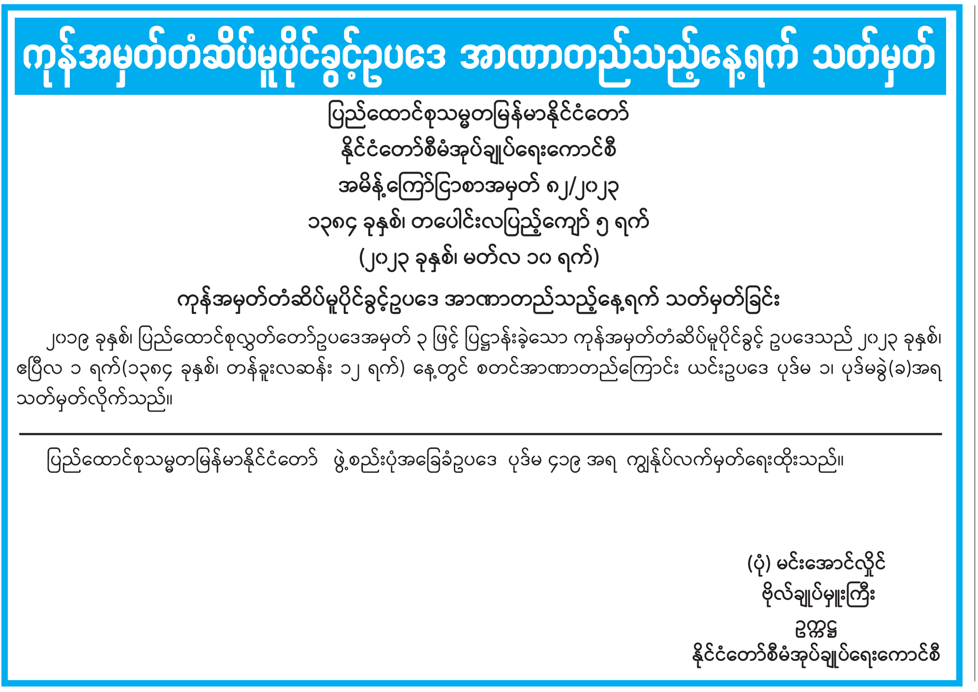 ကုန်အမှတ်တံဆိပ်မူပိုင်ခွင့်ဥပဒေ အာဏာတည်သည့်နေ့ရက် သတ်မှတ်