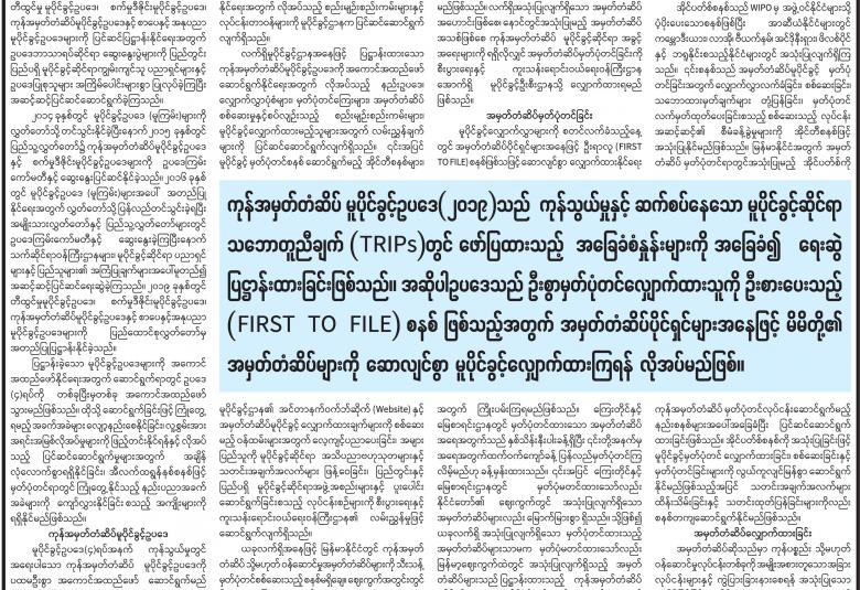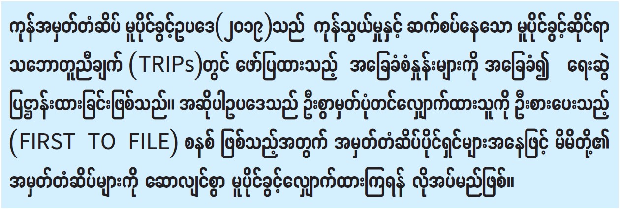 ကုန်အမှတ်တံဆိပ်မူပိုင်ခွင့်ဥပဒေ(၂၀၁၉) အကောင်အထည်ဖော်ဆောင်ရွက်ခြင်း