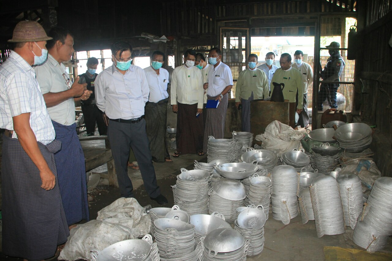 ရှေးဦးစွာ တိုင်းဒေသကြီး ဝန်ကြီးချုပ်နှင့်အဖွဲ့သည် ကဝမြို့နယ်၊ သပြုစံပြကျေးရွာသို့ သွားရောက်၍ ကျေးရွာအတွင်း၌ ဒယ်အိုးအမျိုးမျိုး၊ စက်လှေပန်ကာအမျိုးမျိုး၊ ငရုတ်ဆုံနှင့် ဆိုင်ကယ်အပိုပစ္စည်း အမျိုးမျိုး သတ္တုအရည်ကျိုပုံလောင်း ဆောင်ရွက်နေမှုတို့အား သွားရောက်ကြည့်ရှုစစ်ဆေးသည်။ ယင်းနောက် သပြုစံပြကျေးရွာ အုပ်ချုပ်ရေးမှူးရုံး၌ သတ္တုအရည်ကျိုပုံလောင်းလုပ်ငန်း ဆောင်ရွက်နေသည့် လုပ်ငန်းရှင်များနှင့်တွေ့ဆုံပြီး လုပ်ငန်းသုံးပါဝါမီတာရရှိရေး၊ စက်ရုံများအတွက် အချိန်ပြည့် လျှပ်စစ်မီးရရှိရေး၊ လိုအပ်ပါက ထရန် စဖော်မာတပ်ဆင်နိုင်ရေး၊ ဆိုလာစနစ်ဖြင့် ရေချိုတွင်းနက် တူးဖော်ပေးနိုင်ရေး၊ ကုန်ကြမ်းများရရှိရေးနှင့် ကျေးရွာအနီး MSME လုပ်ငန်းများအတွက် သီးခြားမြေနေရာ သတ်မှတ်ပေးနိုင်ရေးတို့အား သက်ဆိုင်ရာဌာန ဆိုင်ရာများနှင့် ပေါင်းစပ်ညှိနှိုင်း ဆောင်ရွက်ပေးသည်။