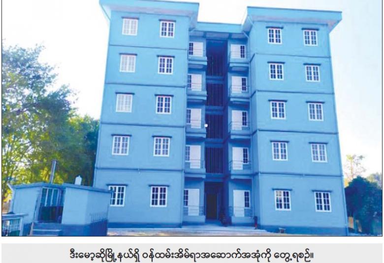 ထို့အပြင် ဒီးမော့ဆိုမြို့နယ်တွင်၂၀၁၃-၂၀၁၄ ဘဏ္ဍာနှစ်တွင် လေးခန်းတွဲ နှစ်ထပ် တစ်လုံး အခန်းပေါင်း ရှစ်ခန်းကို ခွင့်ပြုဘဏ္ဍာငွေ ၁၄၅ သန်းဖြင့် စတင်တည်ဆောက်ခဲ့ပြီး ၂၀၁၈-၂၀၁၉ ဘဏ္ဍာနှစ်တွင် လေးခန်းတွဲ သုံးထပ် တစ်လုံး၊ အခန်းပေါင်း ၁၂ ခန်းကို ခွင့်ပြုဘဏ္ဍာငွေ ၂၀၁ ဒသမ ၆၆၃ သန်းဖြင့် တိုးချဲ့ တည်ဆောက်ခဲ့သည်။ ၂၀၁၉-၂၀၂၀ ဘဏ္ဍာနှစ်တွင် လေးခန်းတွဲ ငါးထပ် တစ်လုံး၊ အခန်း ပေါင်း ၂၀ ကို ခွင့်ပြုဘဏ္ဍာငွေ ၄၁၅ ဒသမ ၀၃၁ သန်းဖြင့် ထပ်မံတိုးချဲ့ တည်ဆောက်နိုင်ခဲ့သဖြင့် ဒီးမော့ဆိုမြို့နယ်တွင် စုစုပေါင်း အဆောက်အအုံ အလုံးရေ သုံးလုံး၊ အခန်းပေါင်း ၄၀ ကို တည်ဆောက်ပြီး ဝန်ထမ်းအိမ်ထောင်စု ၄၀ ကို အိမ်ခန်း နေရာချထားပေးနိုင်ခဲ့သည်။